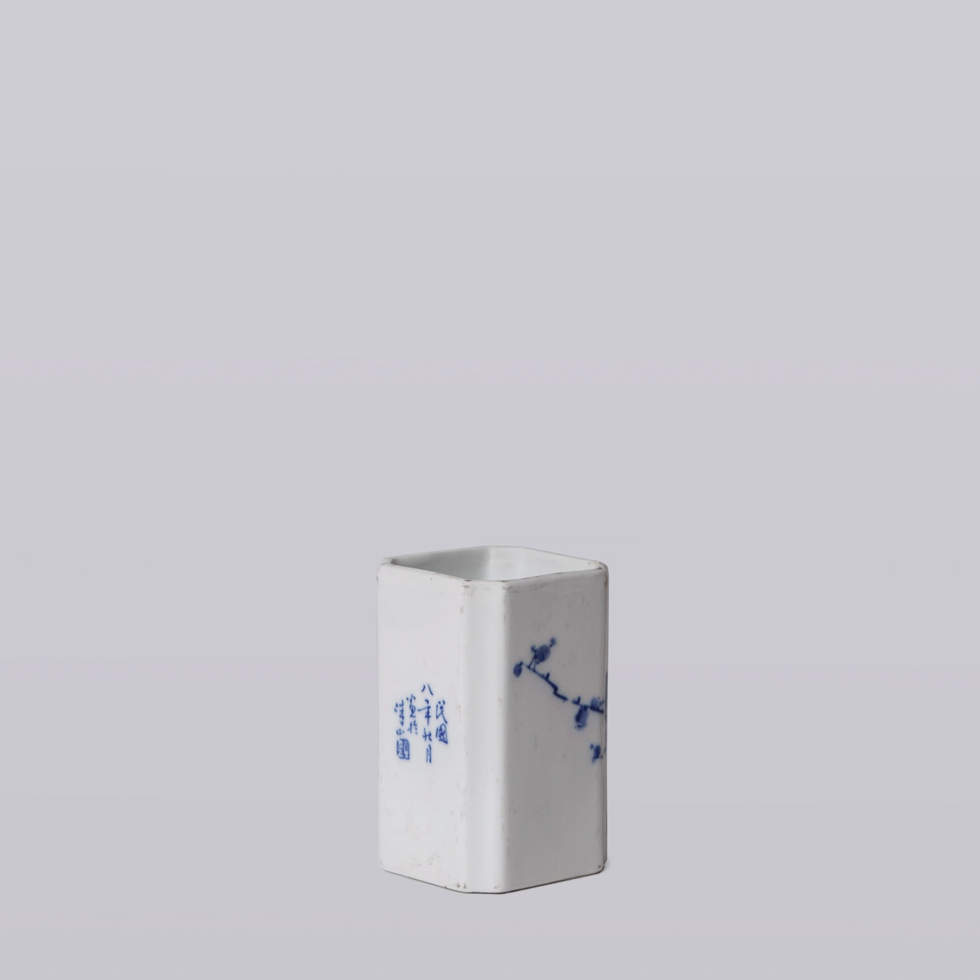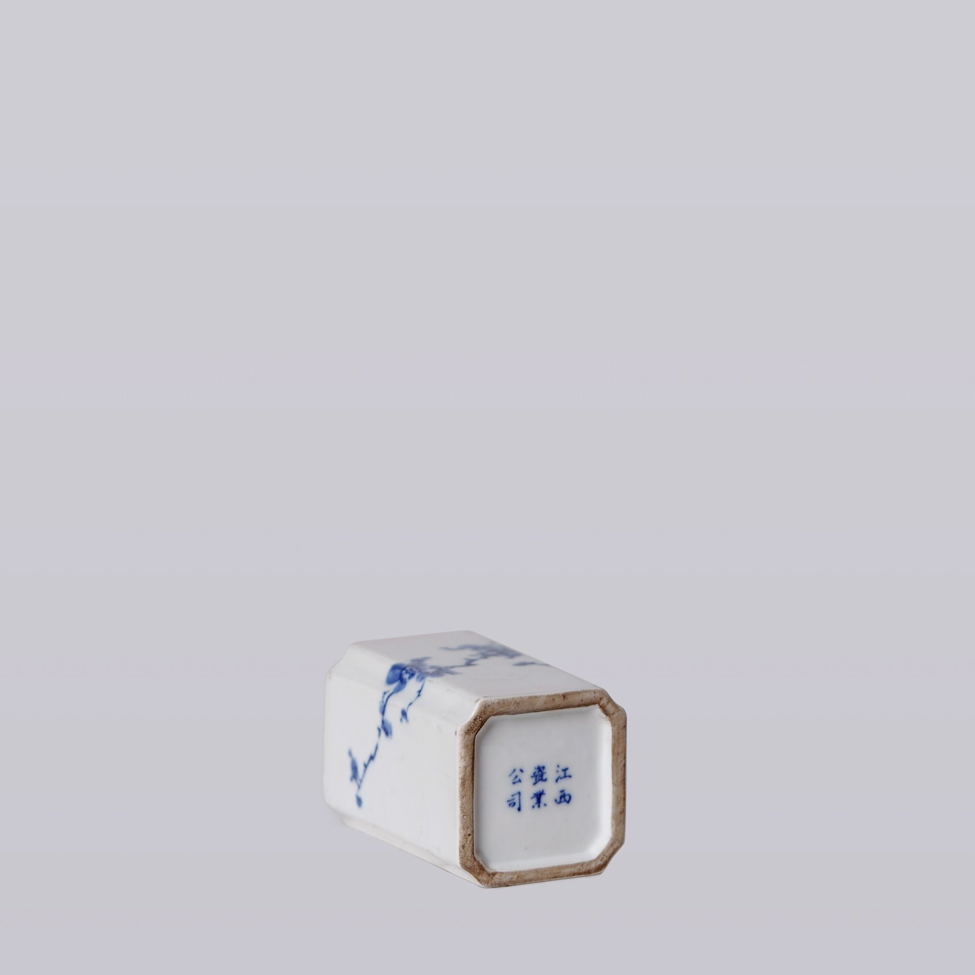 1920s Blue and White Porcelain Cherry Blossom Square Vase