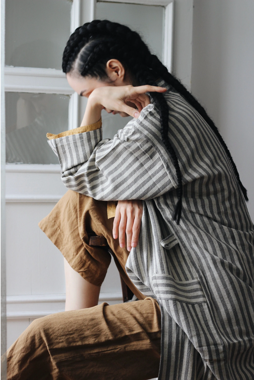 Experience the ultimate in luxury and sustainability with our hand-made cotton-linen blend robe. Made from natural materials, this robe is not only soft and comfortable but also eco-friendly. The perfect combination of beige and light gray colors makes it a versatile addition to your wardrobe. Lightweight and breathable, this robe is perfect for lounging at home, or for adding a touch of elegance to your morning routine. Tailored for adults, this robe offers the perfect fit and feel for any body type. Not only stylish but also a conscious choice, treat yourself or gift it to a loved one and make a difference in the world.
