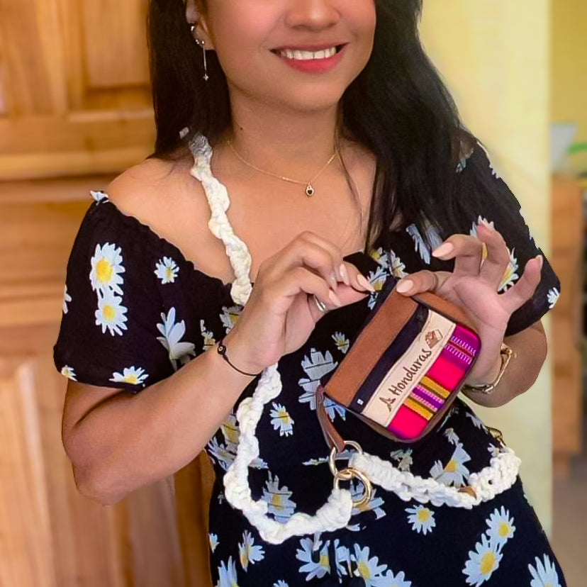 Use all three pieces for a crossbody strap to hold your phone securely by your side. Clip on your keys or the lovely hand sewn Honduras change purse.