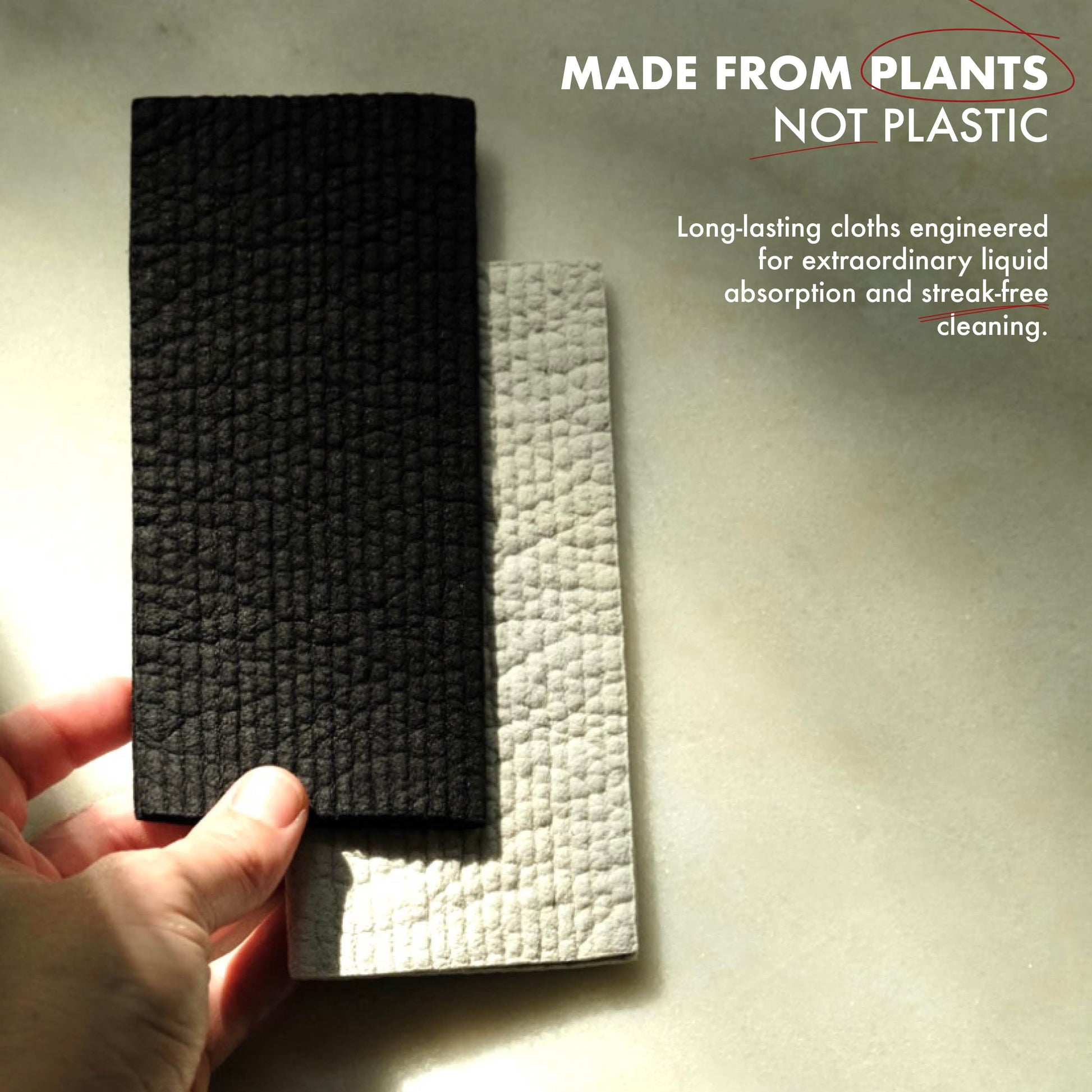 Two plastic-free and 100% compostable all-purpose cloths + Engineered for extraordinary absorption + Made from natural wood-based cellulose and cotton + Dishwasher-safe (30-40°C)