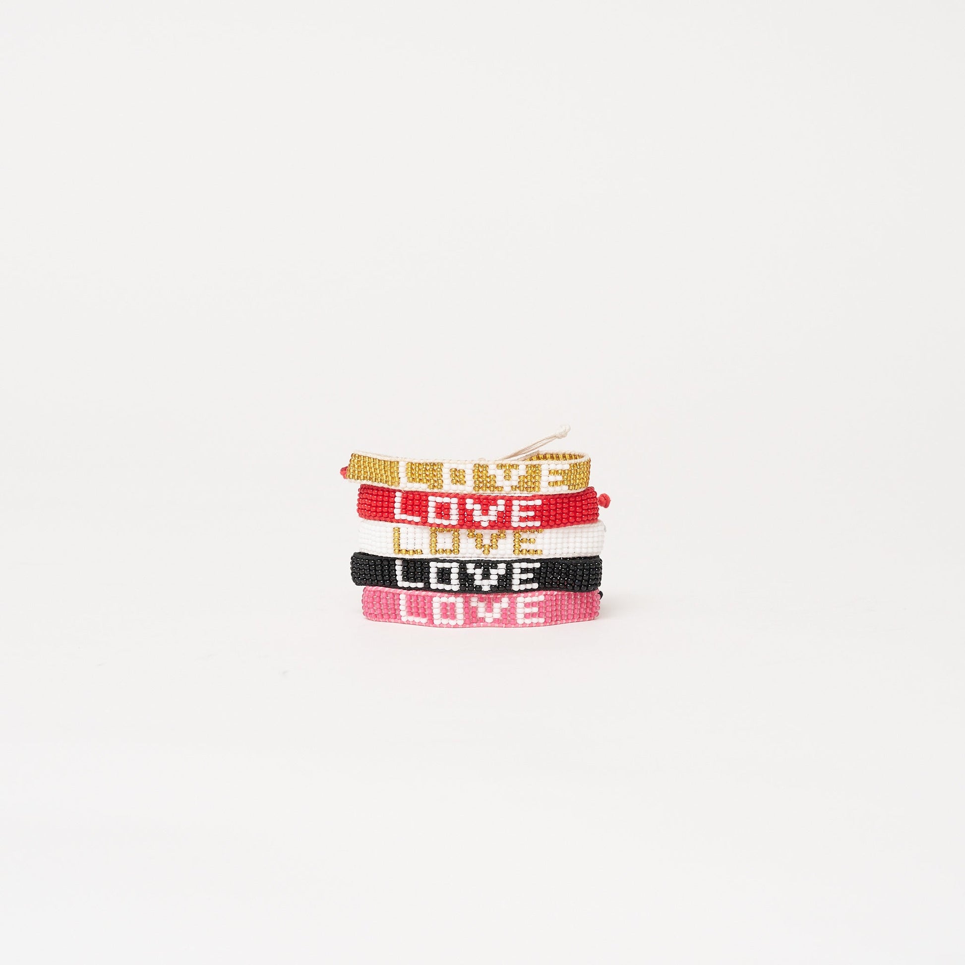 - Set of 5 woven bracelets, each featuring the word "LOVE"