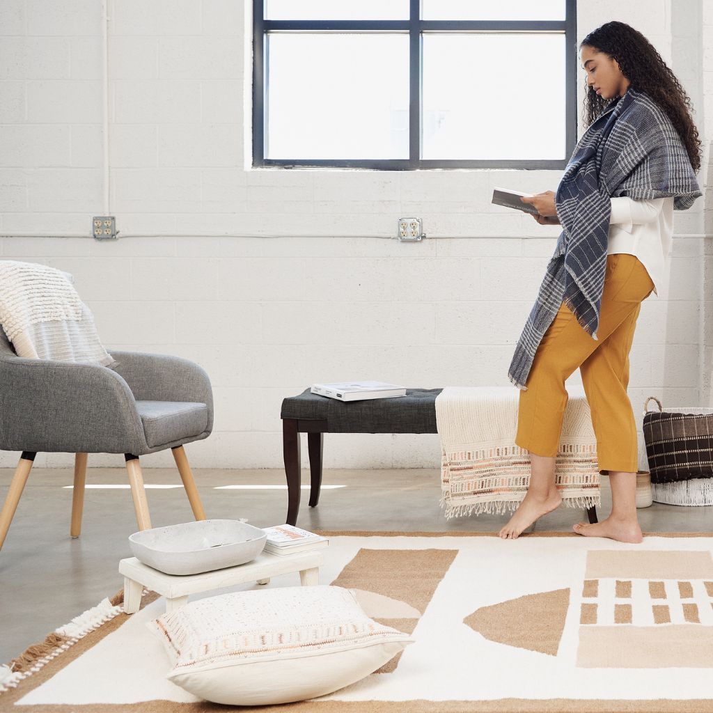 Alloy throw is soft to touch and wears well over time. Requiring attention to detail and finishing, this throw luxuriously combines heritage value. high quality craftsmanship & it is reversible to arrange and use. Fringes are kept short for a modern look.