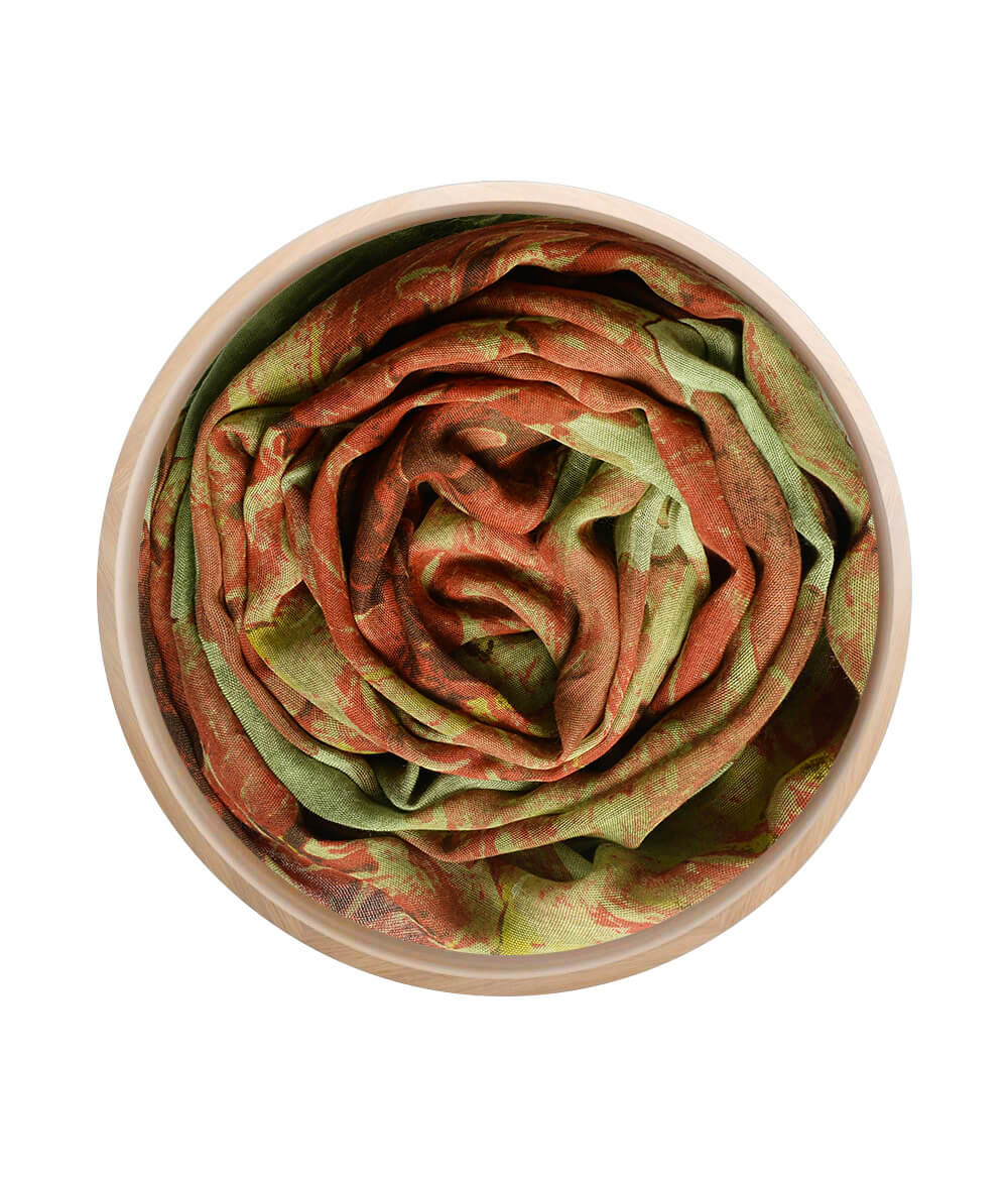 This pattern takes inspiration from the roses petals represented in many of Duch artist Sir Lawrence Alma Tadema paintings. Here is designed on a dark green tone background. Born from the idea of combining Art and Nature these exclusive prints are designed and handcrafted in Florence, Italy on a light as air bamboo fiber fabric through sophisticated production processes in full respect of the Italian tradition. The result are scarves like works of art that dress every woman with elegance and sustainability.