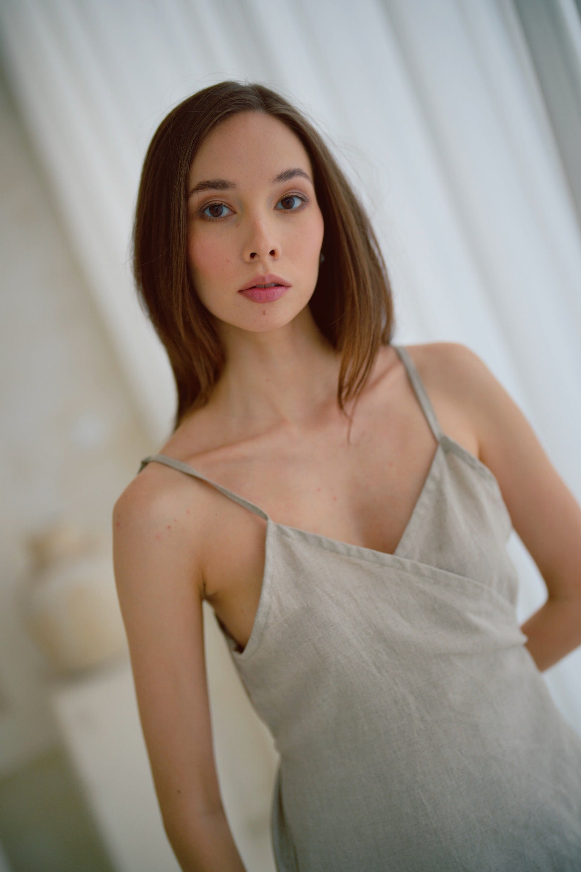 So lovely in this gorgeous midi dress, features in a surplice wrap front silhouette with V-neckline and adjustable shoulder straps, two sided pockets for a chic style. With our made-to-order approach, every piece is created by need which allows our talented artisans to take their time to focus on every detail. Every tailor-quality garment is specifically made specially for you. Every stitch is meant to keep our artisans craftsmanship culture alive. Our model is 5‘7” Size S and is wearing One size. Dress length measurement: 41.75” / 106 cm (breast to bottom). Adjustable shoulder straps, wrap-inspired silhouette. Two sided pockets. Hand wash cold. Lay flat to dry. 100% linen. Shipping & Returns: Return accepted for store credit only. Please see our Shipping & Returns page for more details.