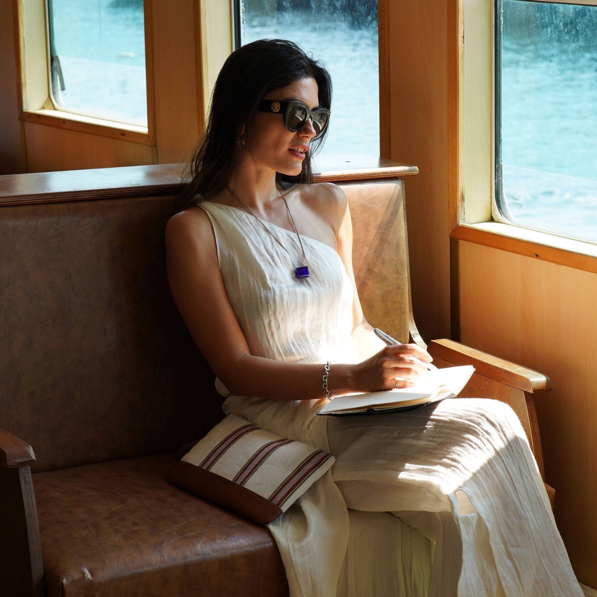 tobacco calfskin handwoven fabric protective sponge form inside suitable for vacations, everyday use, trips, shopping and others Size: 28x18 cm / 7x11x0,5 inch