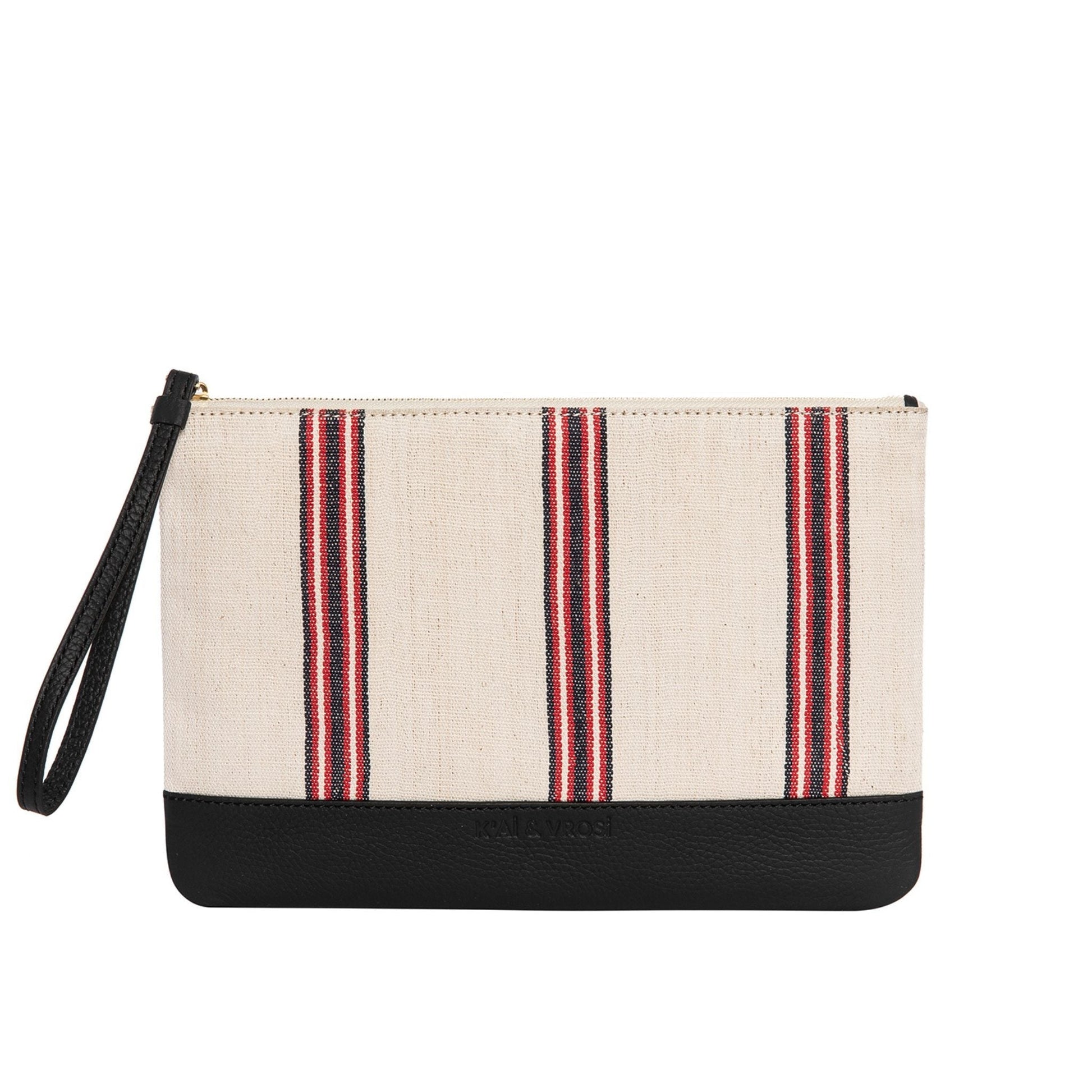 Apollon - Black Calfskin & Handloomed Fabric Clutch