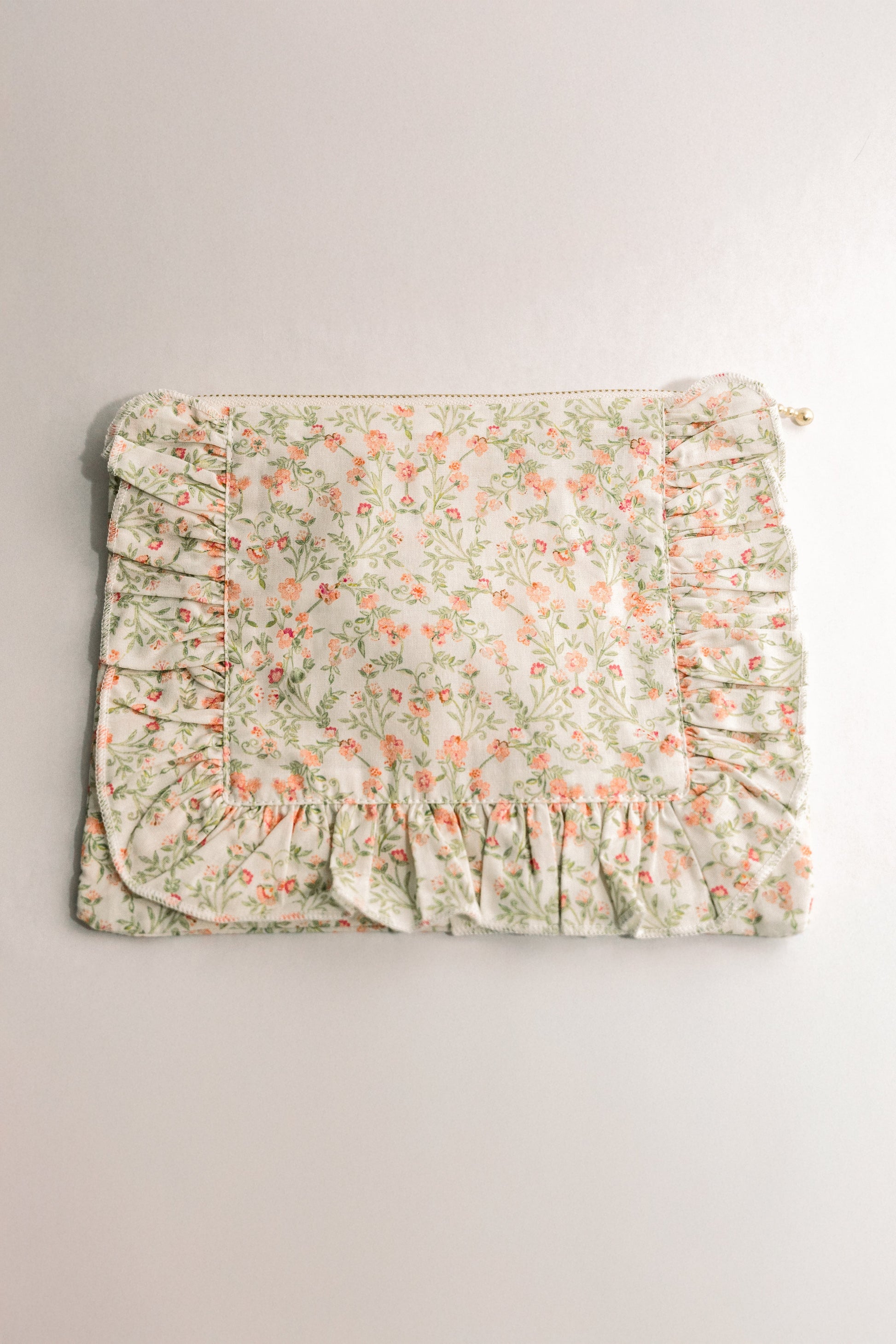 Apricot Meadow |Timeless Floral Ruffle Zipper Pouch