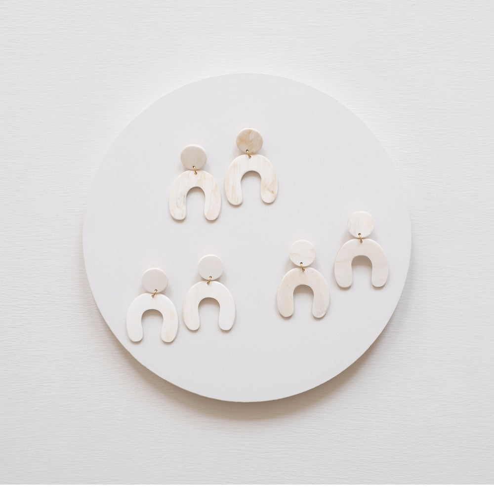 Beautiful light weight post earrings in a dangled Arch shape. Hand carved from upcycled white horn, these minimal earrings will keep you on trend in your sustainable, modern style.