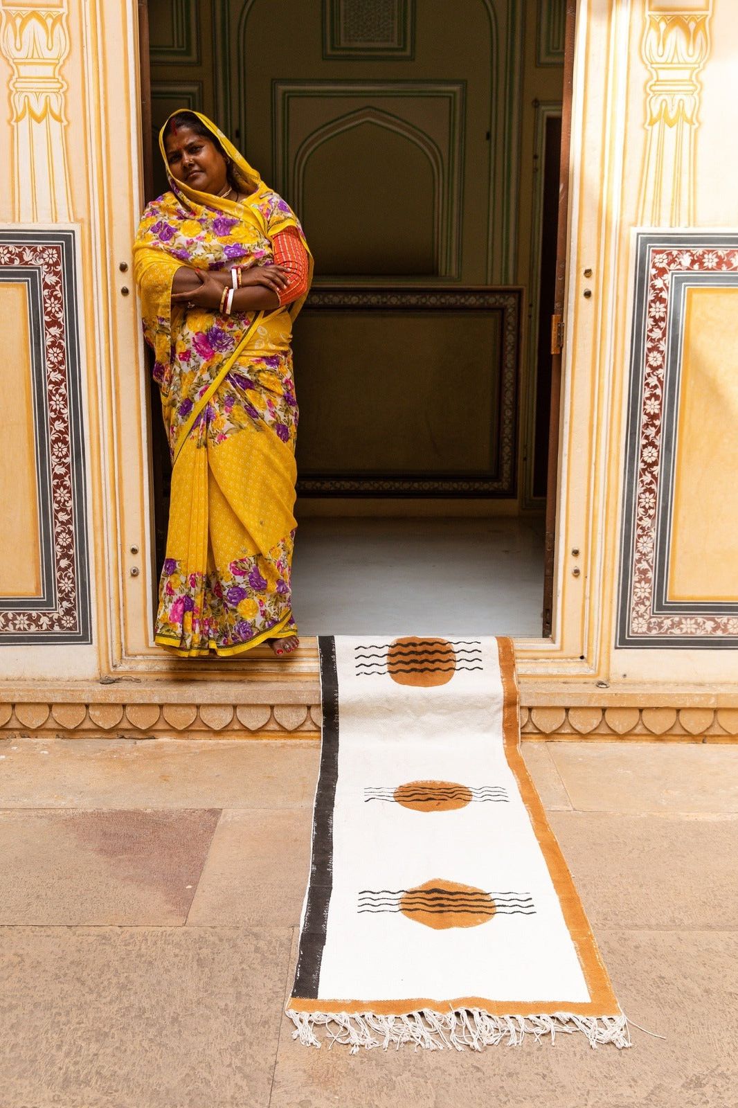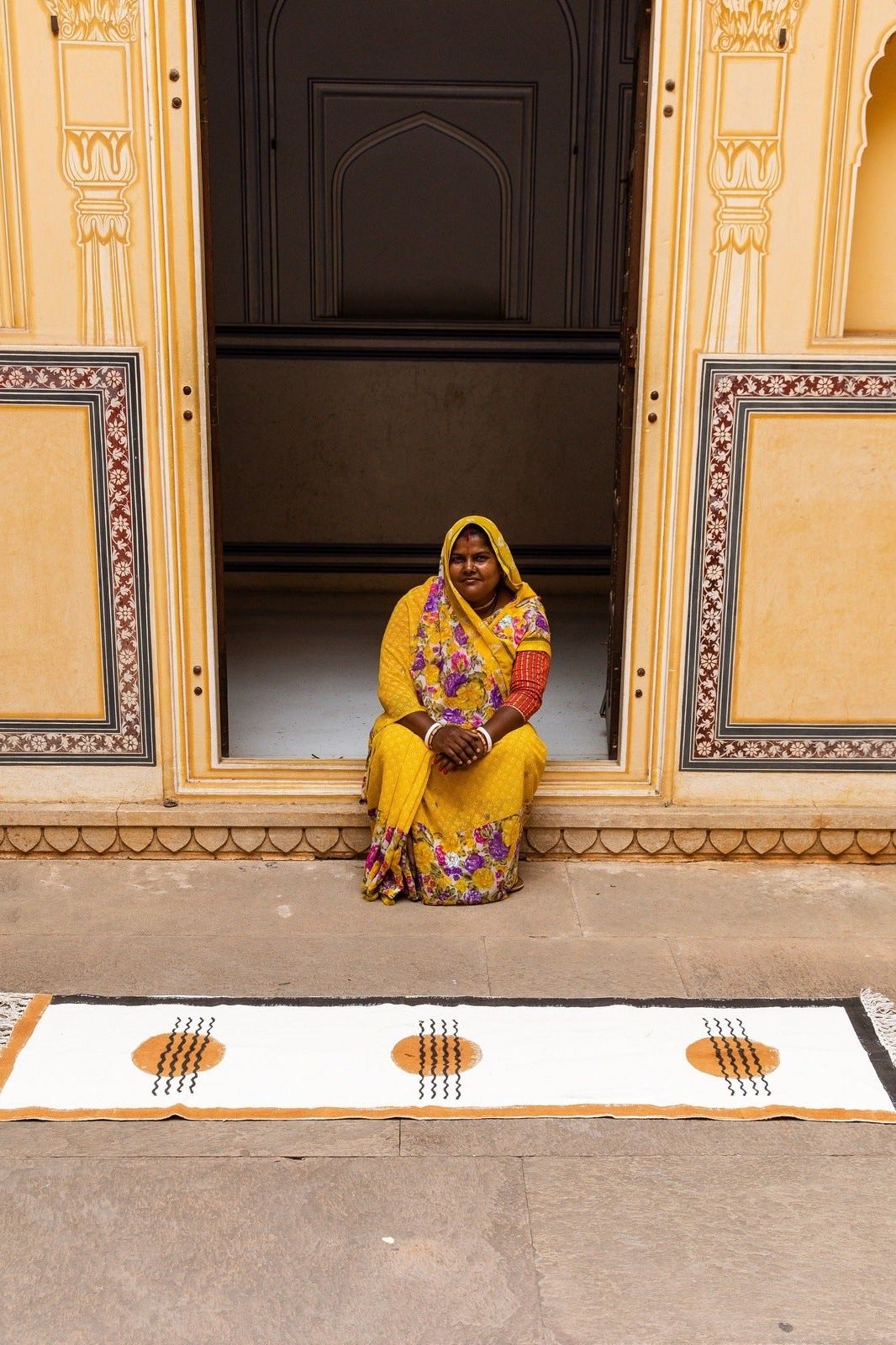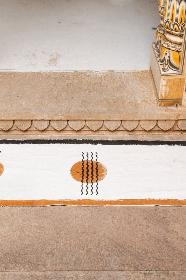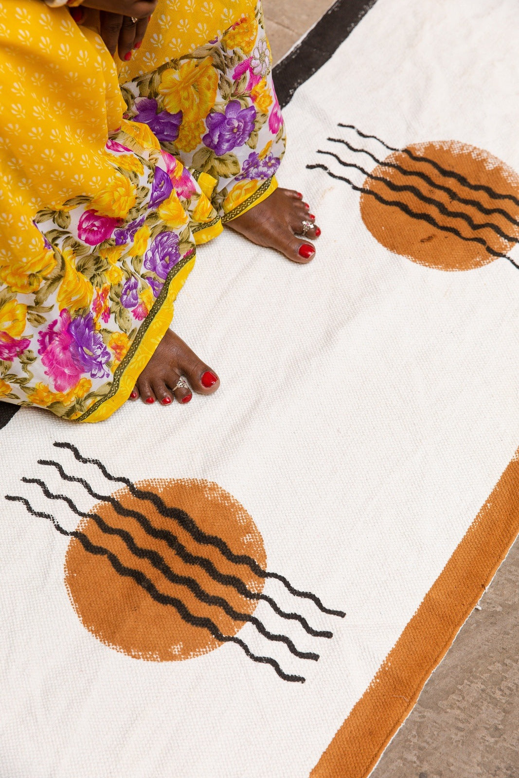 Each rug is handmade, requiring attention from 4 artisans, including wood carvers, block printers, weavers, and dye specialists. The design is hand-pressed onto each rug using hand-carved wooden blocks dipped in dyes. All rugs are made in small batches. Due to the handcrafted nature of this item, expect slight variations in the appearance of each unique piece. - 100% Cotton - Made in India - Ships from California