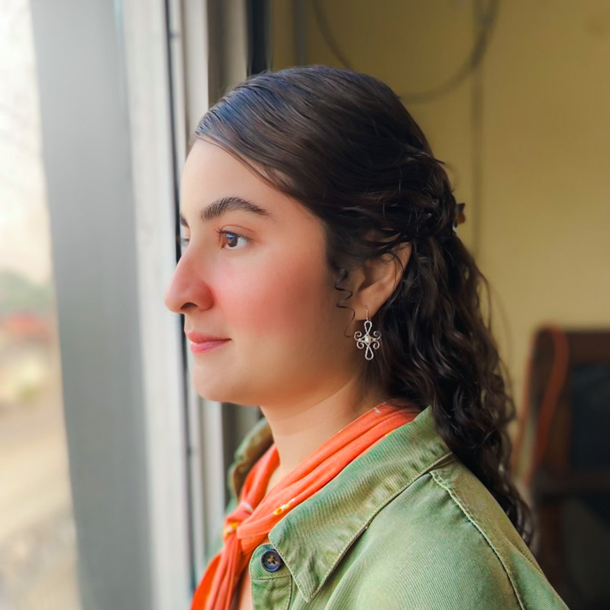 Ava earrings embody understated luxury through hand-hammered silver wire that forms graceful swirls, crowned by a freshwater pearl centerpiece. The artistry lives in the careful interplay of texture and light, translating traditional craftsmanship into a refined, contemporary silhouette. Suspended from hypoallergenic silver-plated fishhooks, they measure a poised 1 1/2 inches in length—compact enough for daily wear, yet distinctive enough to elevate evening moments.