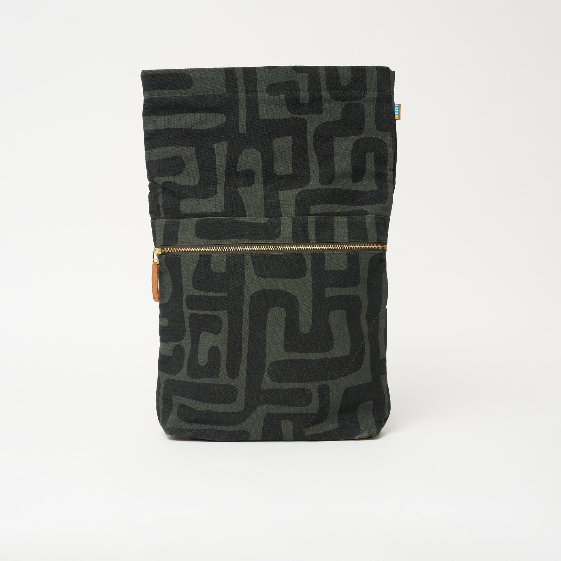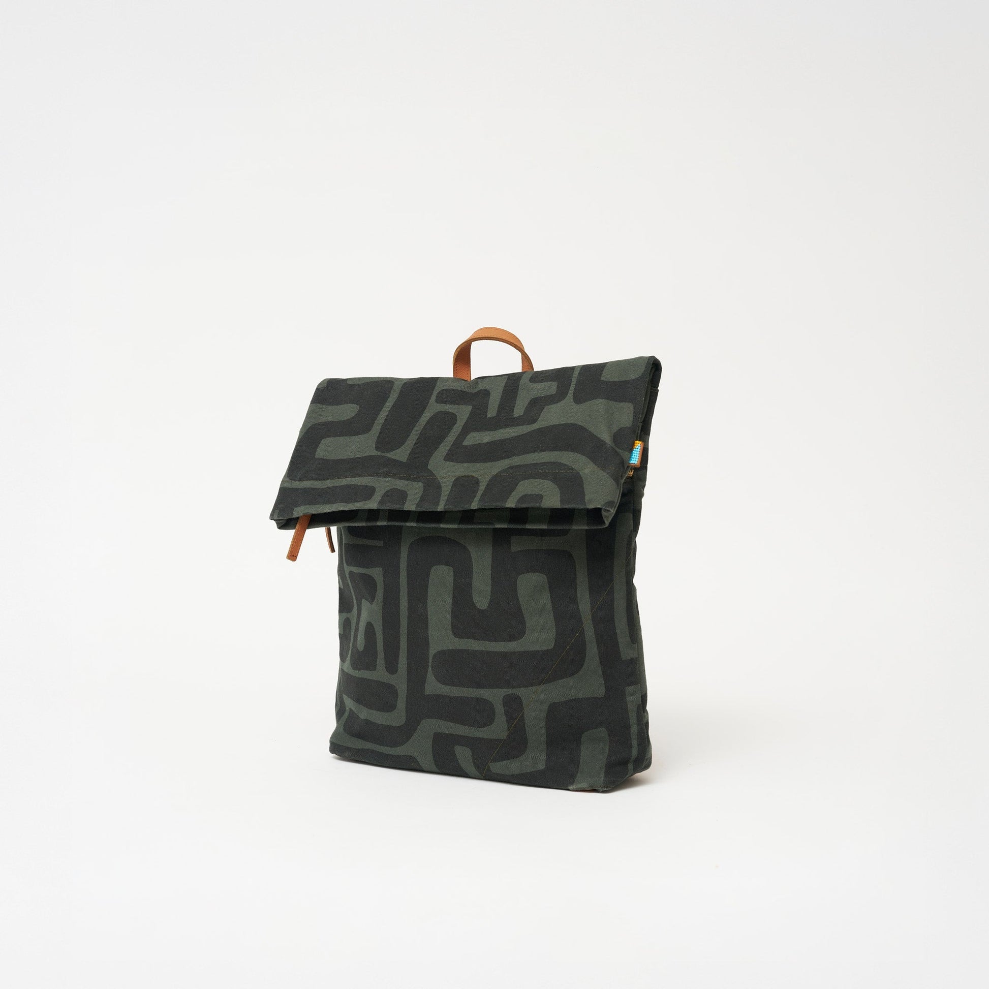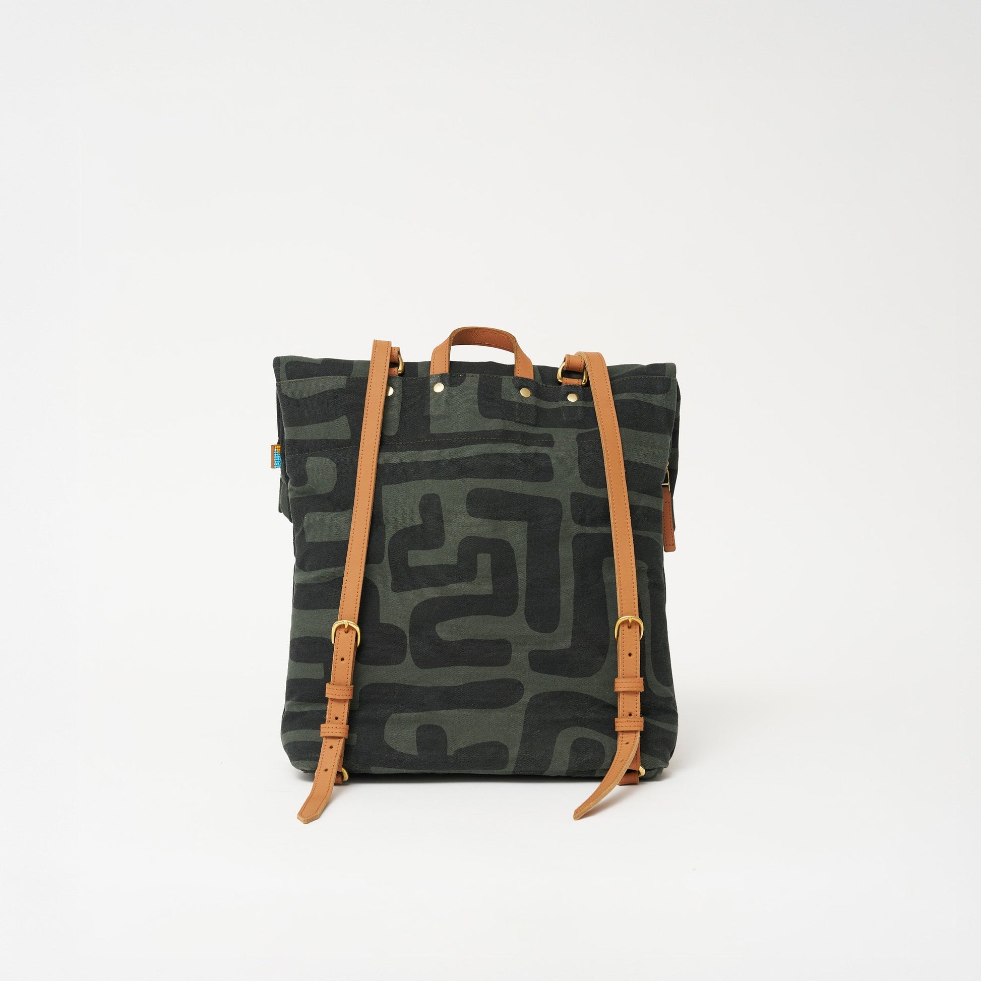 SIZE - Height: 14" - Width: 15" - Depth: Packs flat DETAILS - 100% Natural cotton canvas - Hand-screen printed with water-based ink - Adjustable leather straps - Large external pocket with zipper with leather pull - Fold over top - Zipper closure with leather pull - Internal compartment with padding - Comes with a dust bag Learn how to clean your canvas bag (the right way!)