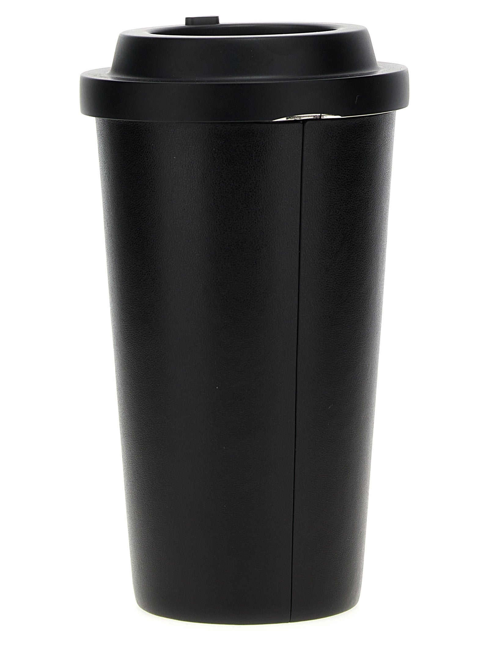9 AM' leather clutch in the shape of a coffee cup with top click closure, front logo.