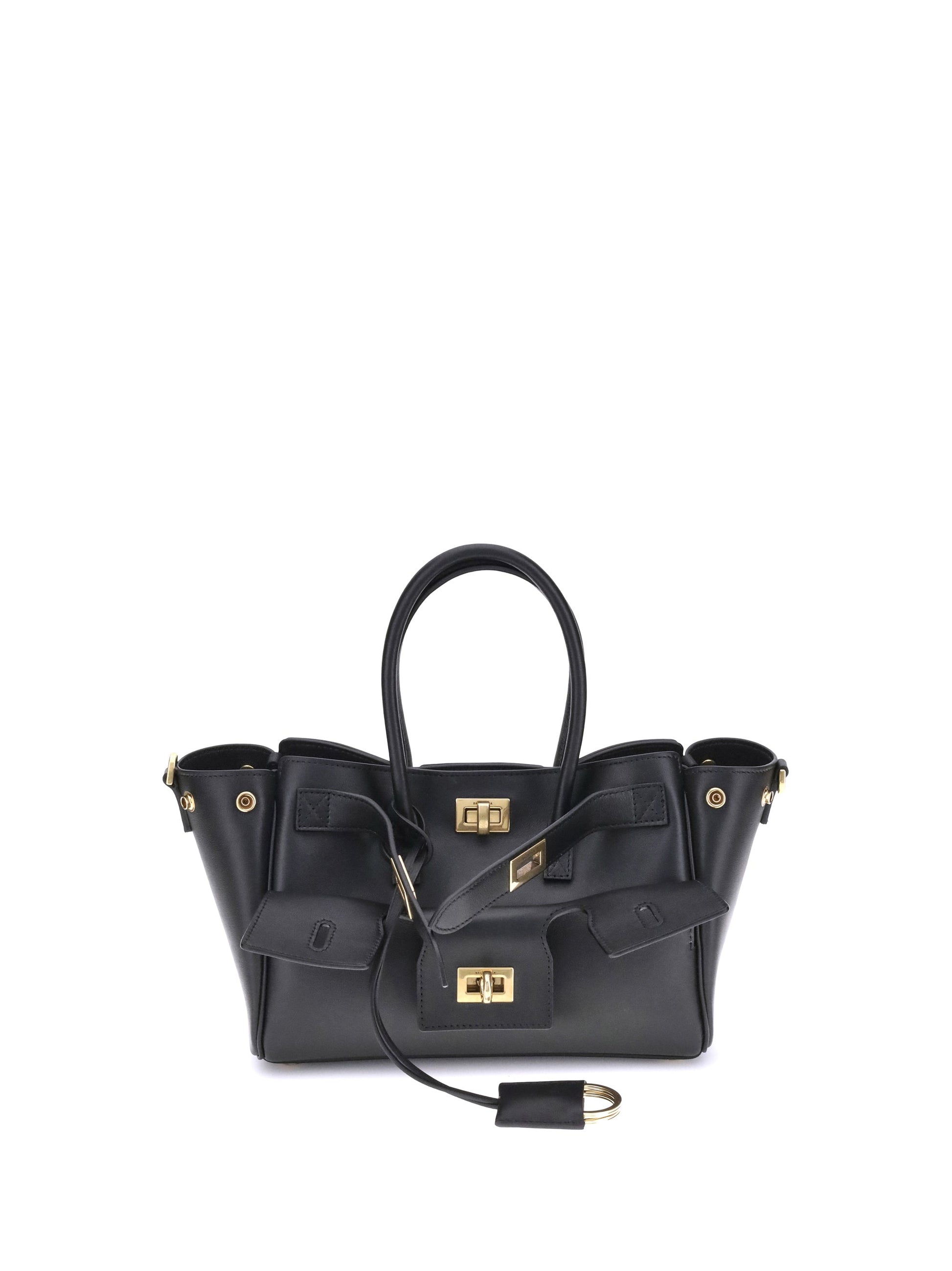 Balenciaga's Bel Air mini Handbag is a versatile and iconic accessory. Carried on the shoulder, over the shoulder or by hand, it features two handles and an adjustable, removable shoulder strap. The embossed Balenciaga Paris logo with lamination decorates the back. Antiqued gold hardware, a removable key ring, side snap buttons and a swivel closure and engraved logo belts complete the design. It offers a large front pocket, an open main compartment and two interior zippered pockets, combining style and functionality.