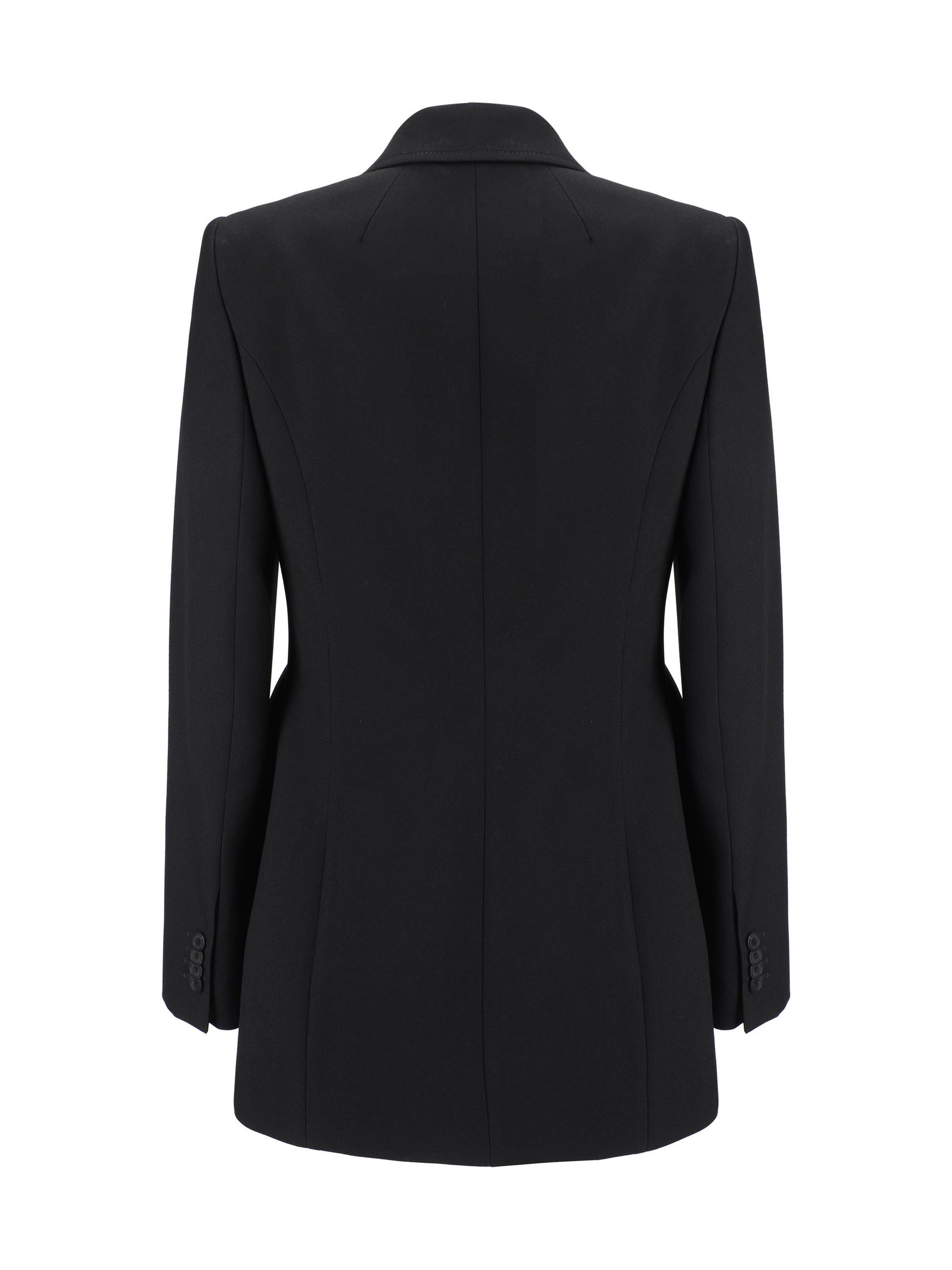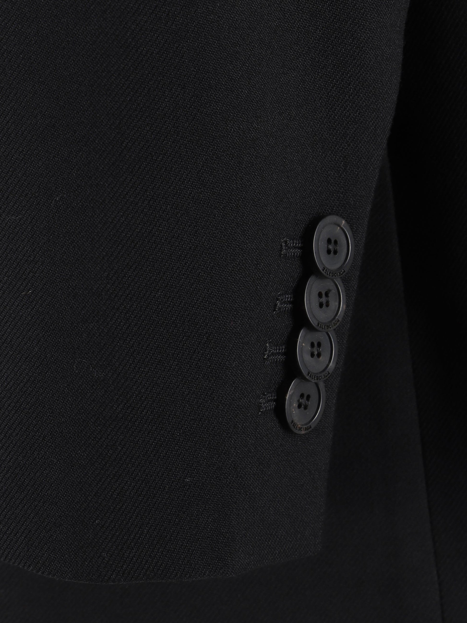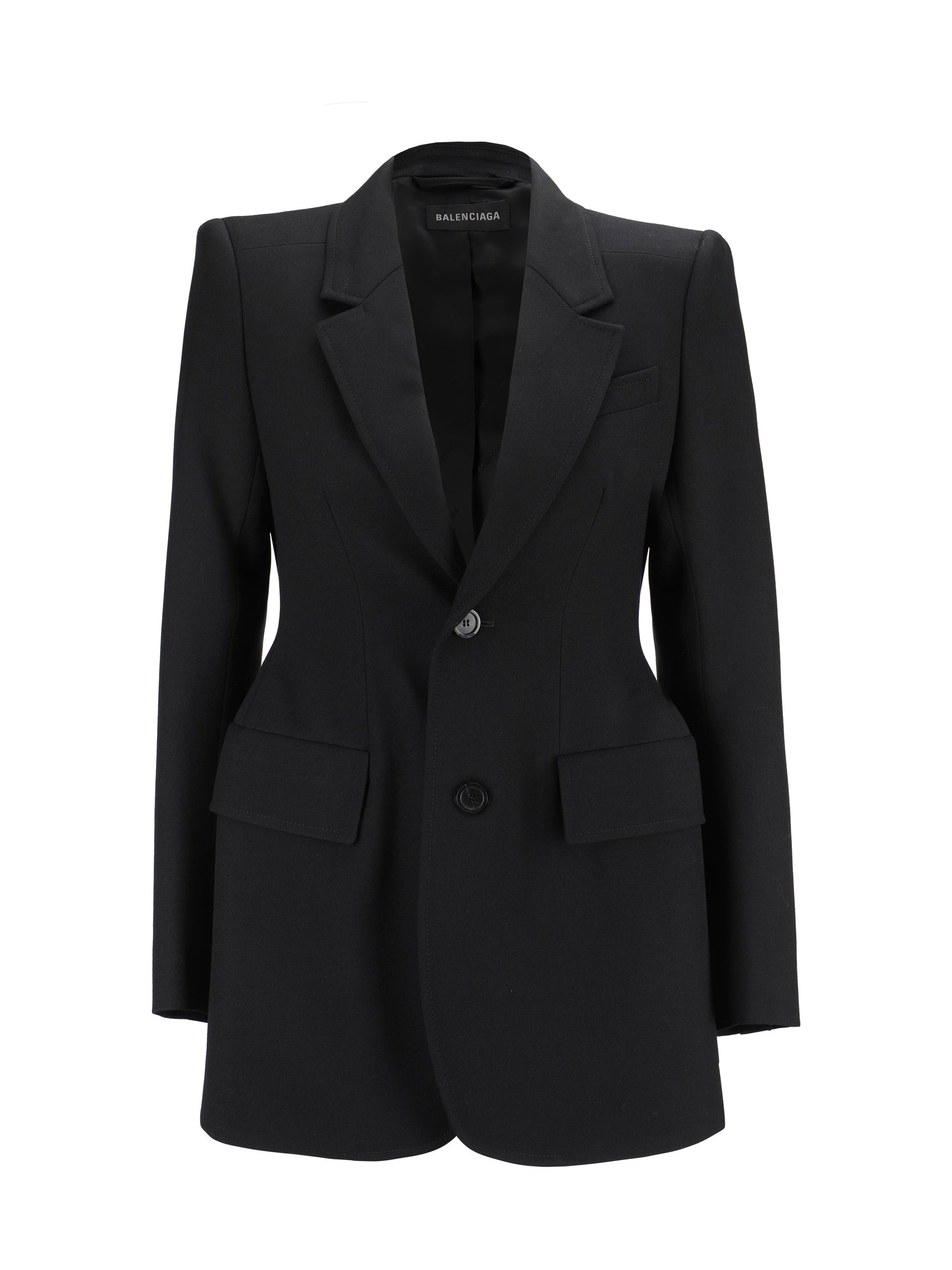 Wool Blazer Jacket by Balenciaga featuring front button closure, classic lapels, two side flap welt pockets, one front welt pocket, structured shoulders, regular fit.