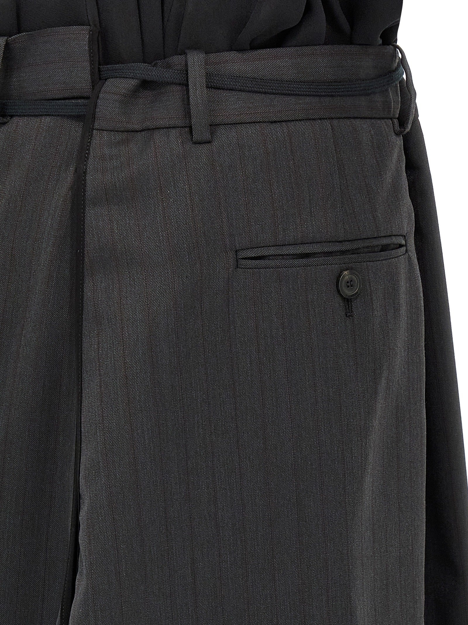 'Patched Slip' long dress in technical georgette with lingerie top with lace details and asymmetrical shoulder straps, V-neck, sleeveless skirt with zip and front button closure, wallet model with drawstring at the waist, pockets, back split.