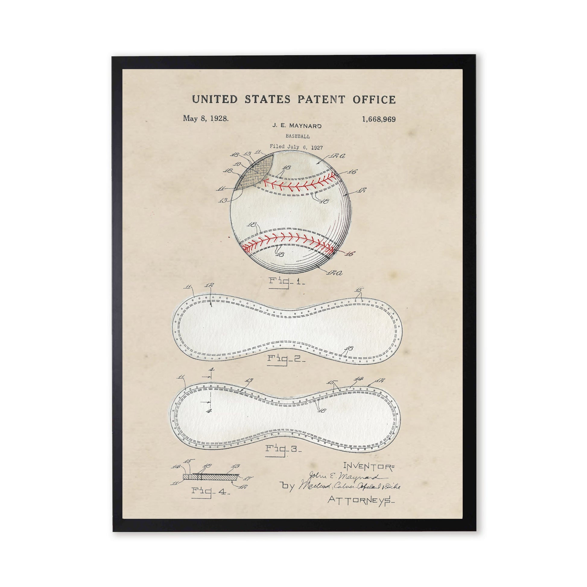 This vintage-inspired print, framed in a black wooden frame, features a baseball patent. Sized at 16 inches by 20 inches, this made in the USA frame makes for a beautiful addition to any wall.