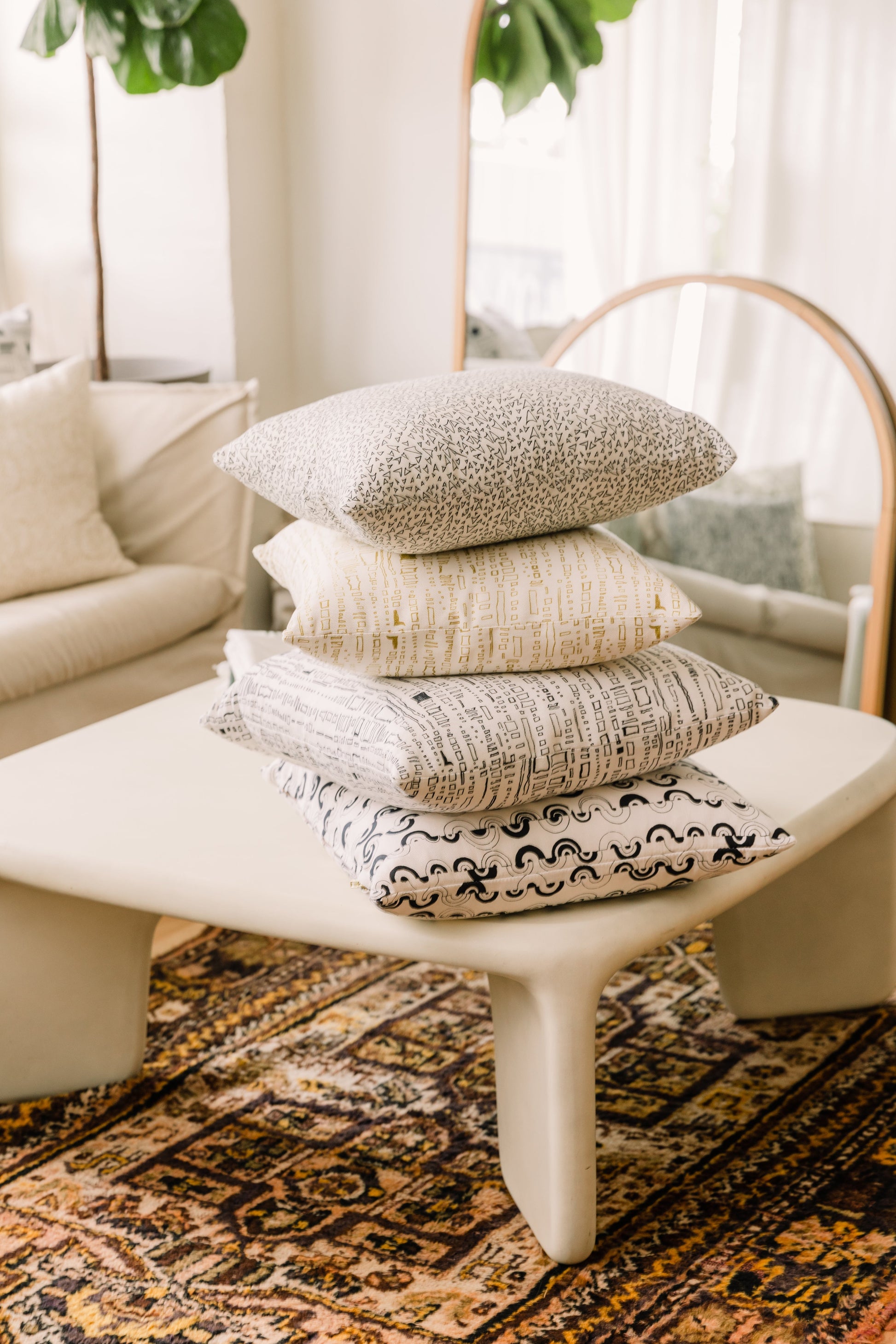 This 16" X 20" pillow features the Basilone print in Albatross, inspired by endless Summer sessions at one of Courtney's favorite spots. Basilone is responsibly printed, cut and sewn in the US on a 55% linen / 45% cotton blend with yarns from Belgium.