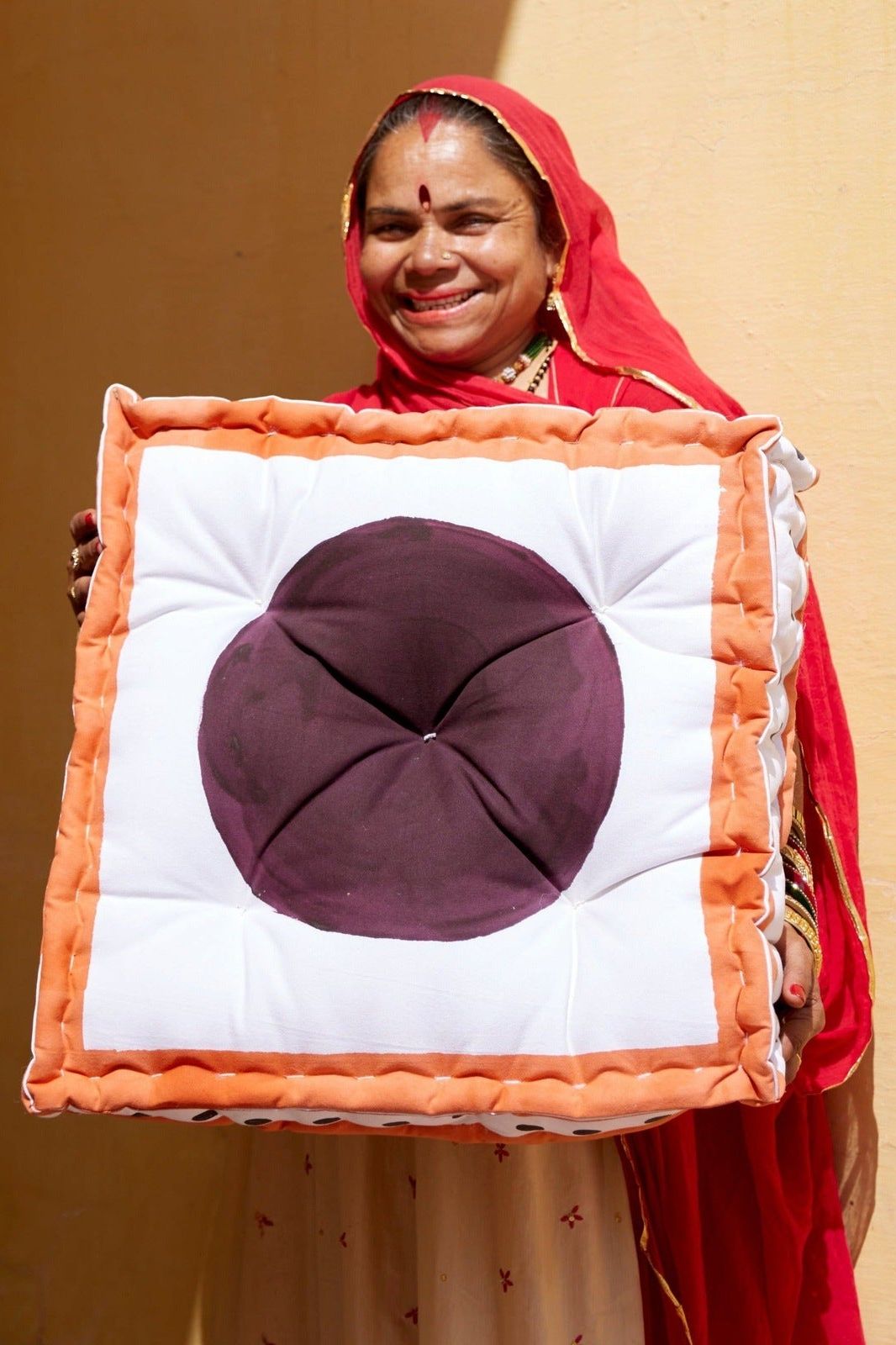 Each floor cushion is handmade, requiring attention from four types of artisans, including wood carvers, block printers, sewists, and dye specialists. The cushion’s design is hand-pressed onto cotton using hand-carved wooden blocks dipped in dyes. The printed cotton shells are then brought to the homes of sewists who stuff and stitch the pillows by hand, creating the final product. Our floor cushions are made in small batches. Due to the handcrafted nature of this item, expect slight variations in the appearance of each unique piece. - 100% cotton exterior - 100% cotton stuffing - Size: 20" x 20" x 6" - Reversible design - Made in India - Ships from California