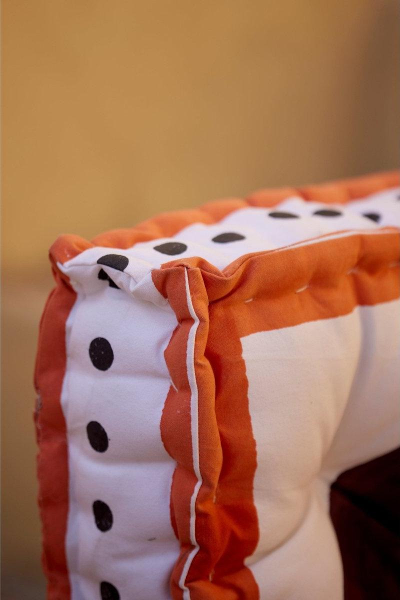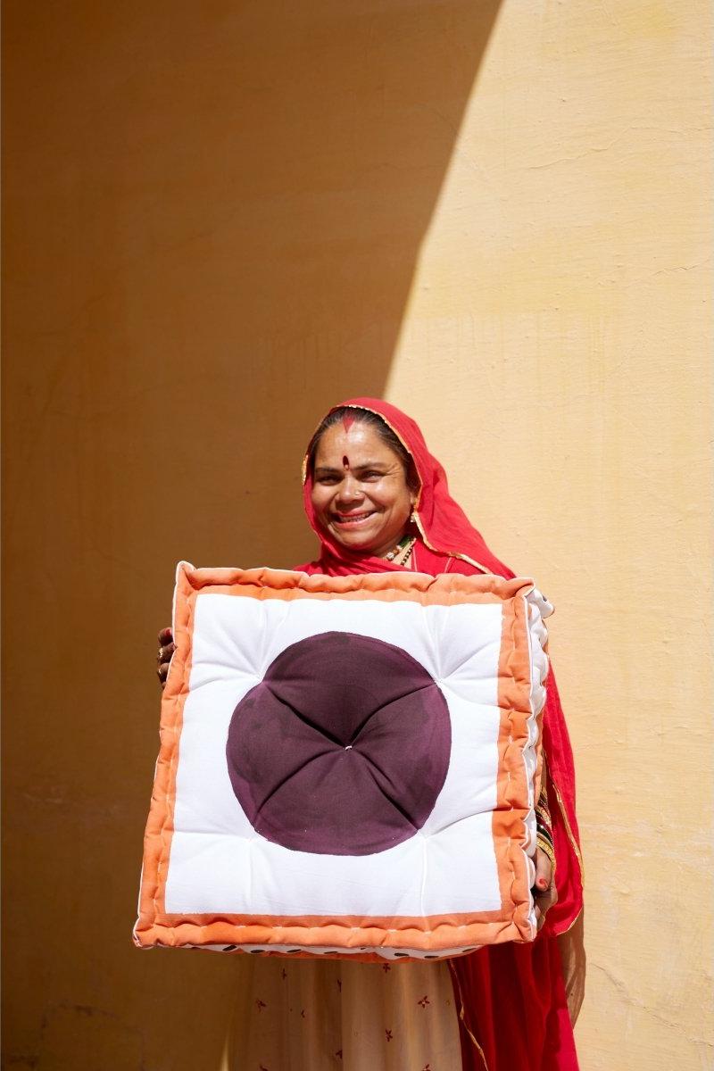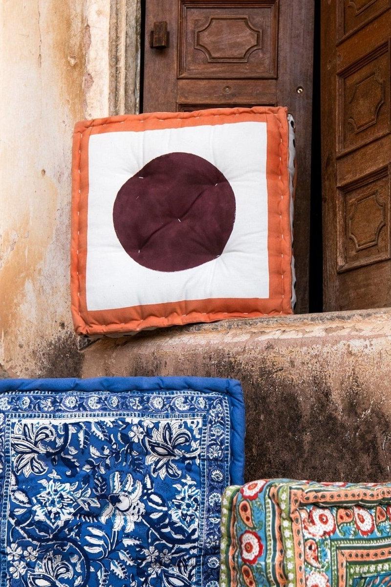 Each floor cushion is handmade, requiring attention from four types of artisans, including wood carvers, block printers, sewists, and dye specialists. The cushion’s design is hand-pressed onto cotton using hand-carved wooden blocks dipped in dyes. The printed cotton shells are then brought to the homes of sewists who stuff and stitch the pillows by hand, creating the final product. Our floor cushions are made in small batches. Due to the handcrafted nature of this item, expect slight variations in the appearance of each unique piece. - 100% cotton exterior - 100% cotton stuffing - Size: 20" x 20" x 6" - Reversible design - Made in India - Ships from California
