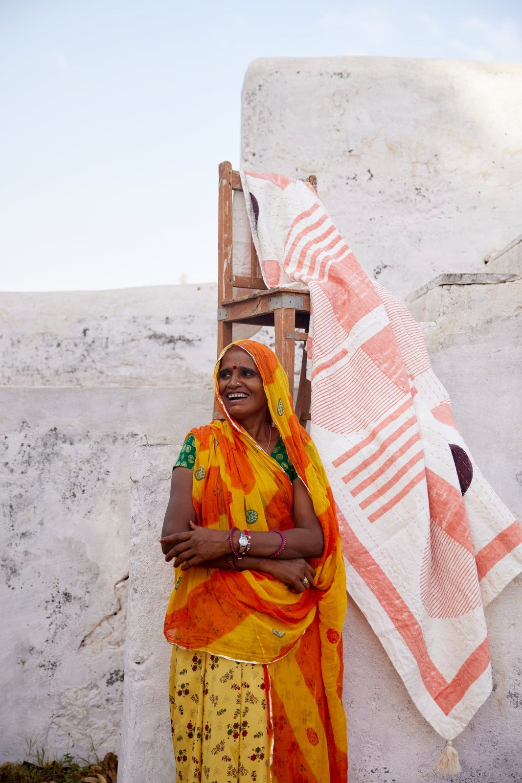 Each throw is handmade, requiring attention from 4 different types of artisans, including wood carvers, block printers, Kantha quiltmakers, and dye specialists. The design is hand-pressed onto pure linen using hand-carved wooden blocks dipped in dyes. The printed linen is brought to the homes of Kantha quiltmakers, who hand-stitch the linen or cotton sheet onto a cotton base to create the final throw. Our throws are made in small batches. Due to the handcrafted nature of this item, expect slight variations in the appearance of each unique piece. - Available in 100% linen or 100% cotton - Size: 54" x 84" - Made in India - Ships from California