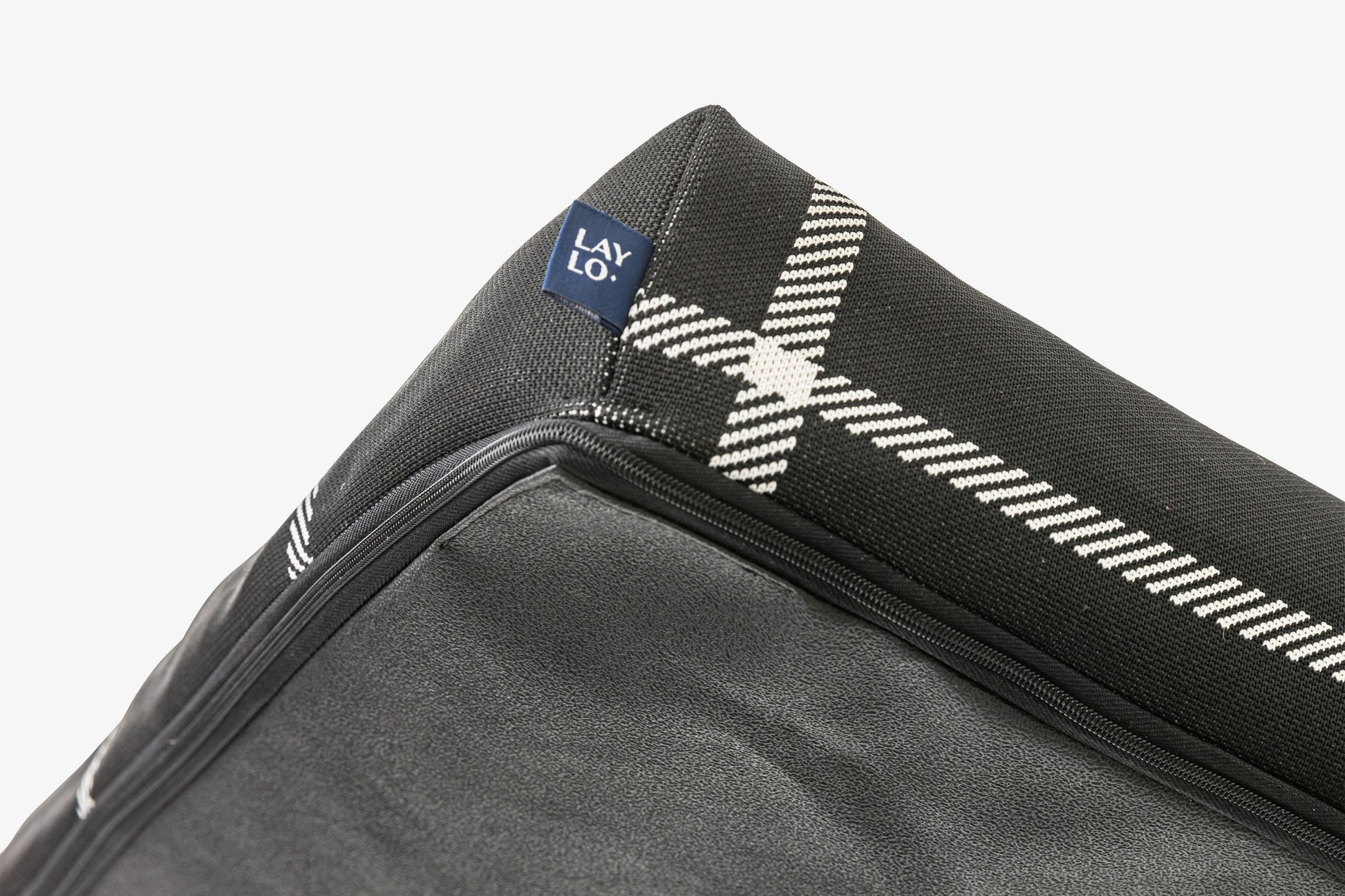 The black windowpane plaid dog bed brings a classic pattern to life with a sense of understated elegance. With a simple grid pattern and minimal colors, this bed evokes a sense of an European countryside cottage and feels just as cozy as it looks.