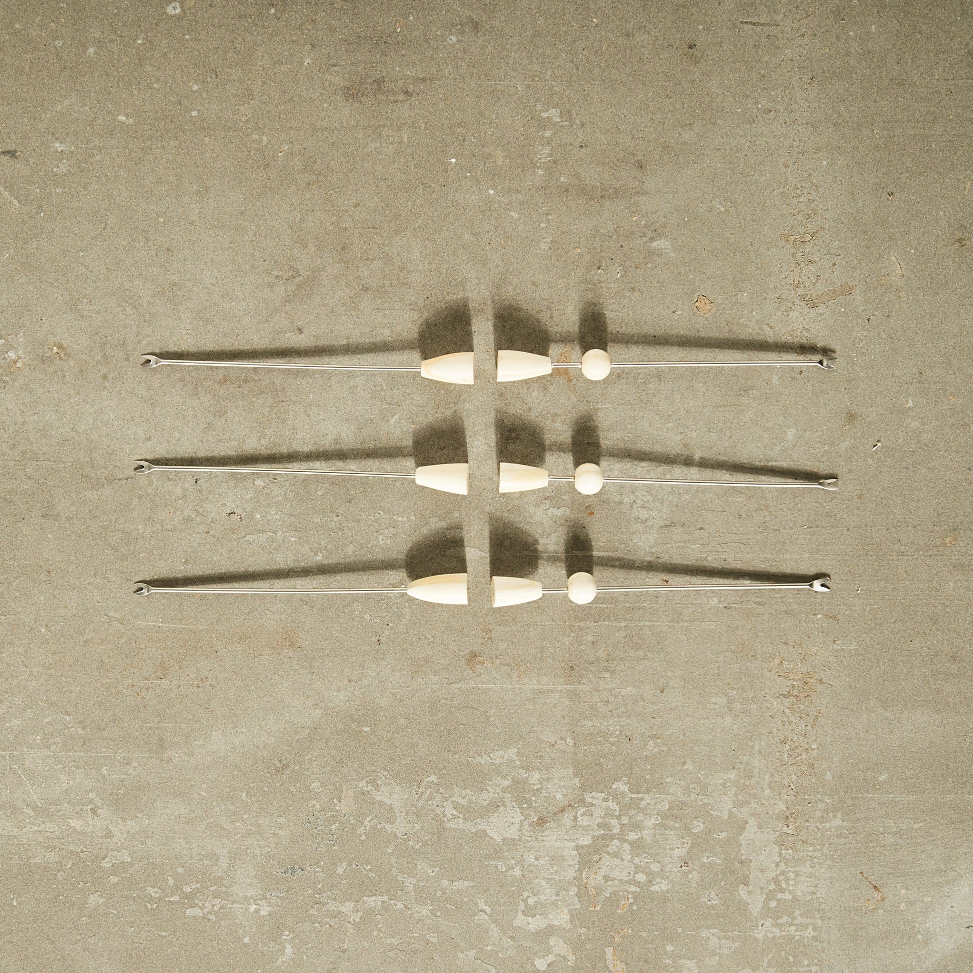 Smooth bead-like bone accents top the forked stainless steel picks of our new Blanco Cocktail Picks. Each embellishment is shaped and buffed by hand before it is applied to the steel pick. The assorted set includes three picks with a single tall finial and three with a double bead accent to elevate your cocktail hour style.
