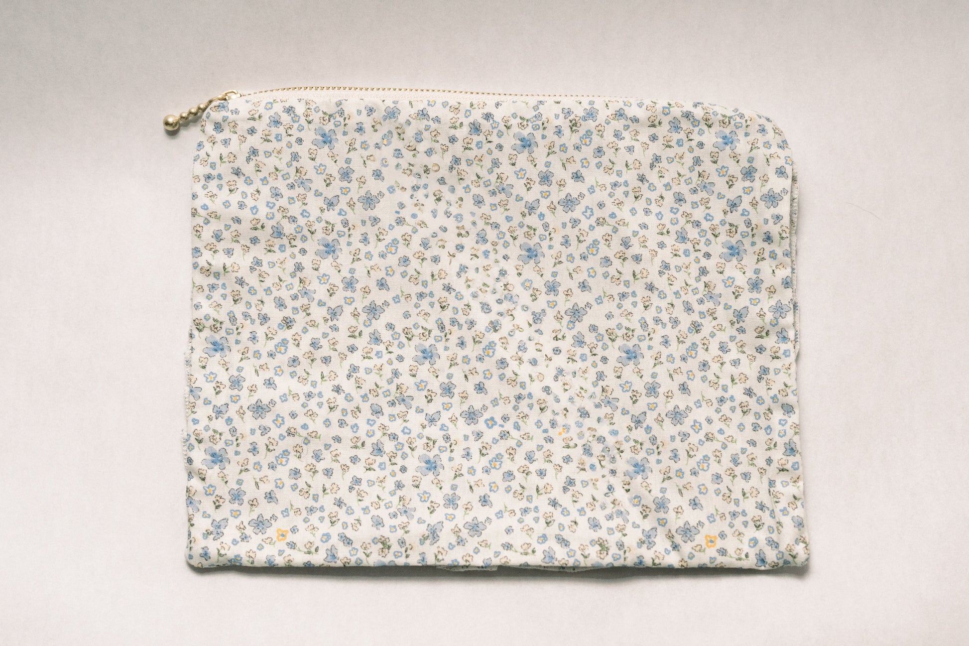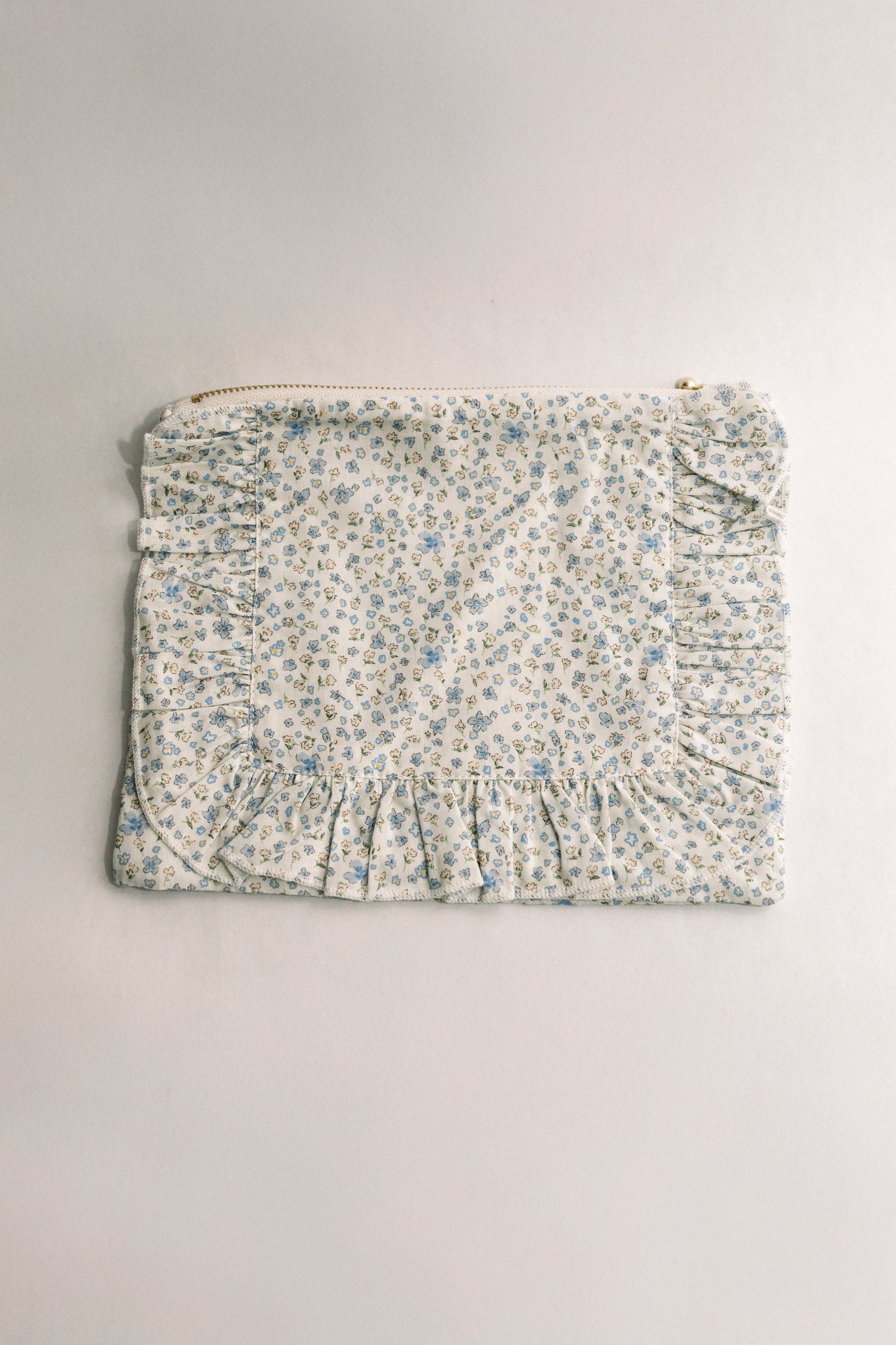 Bluebell Charm | Timeless Floral Ruffle Zipper Pouch