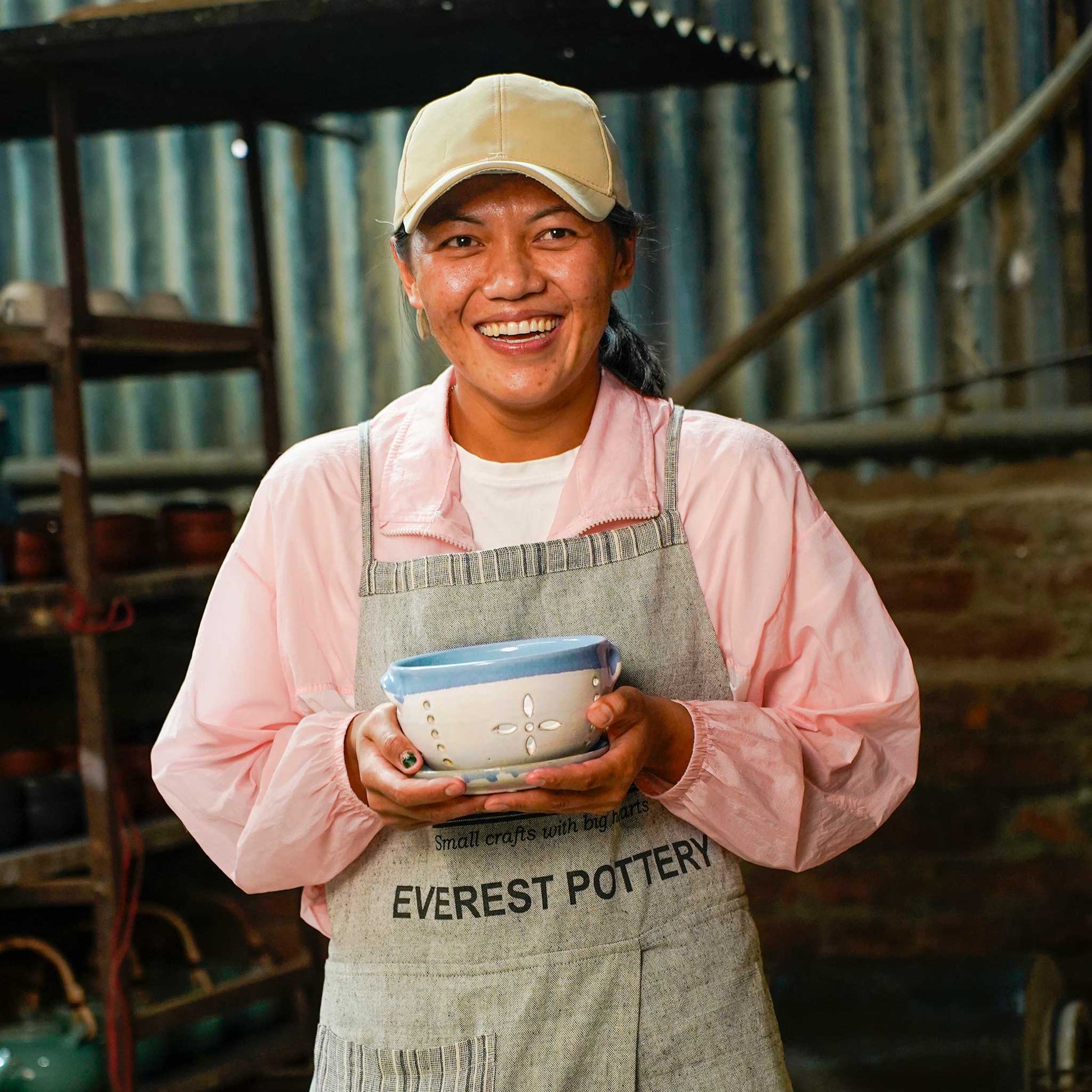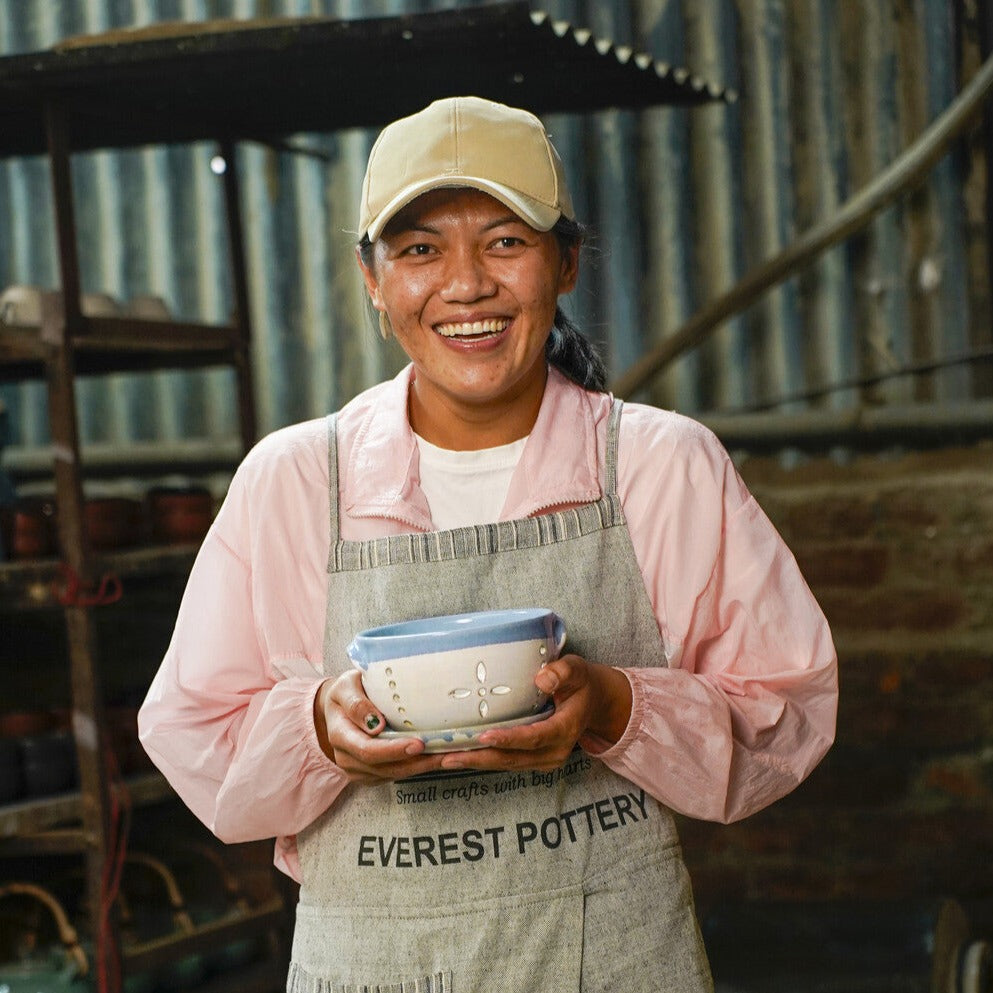 Blueberries, strawberries, raspberries, cherries. Rinse your berries and serve them in this sweet blue and white ceramic colander bowl.