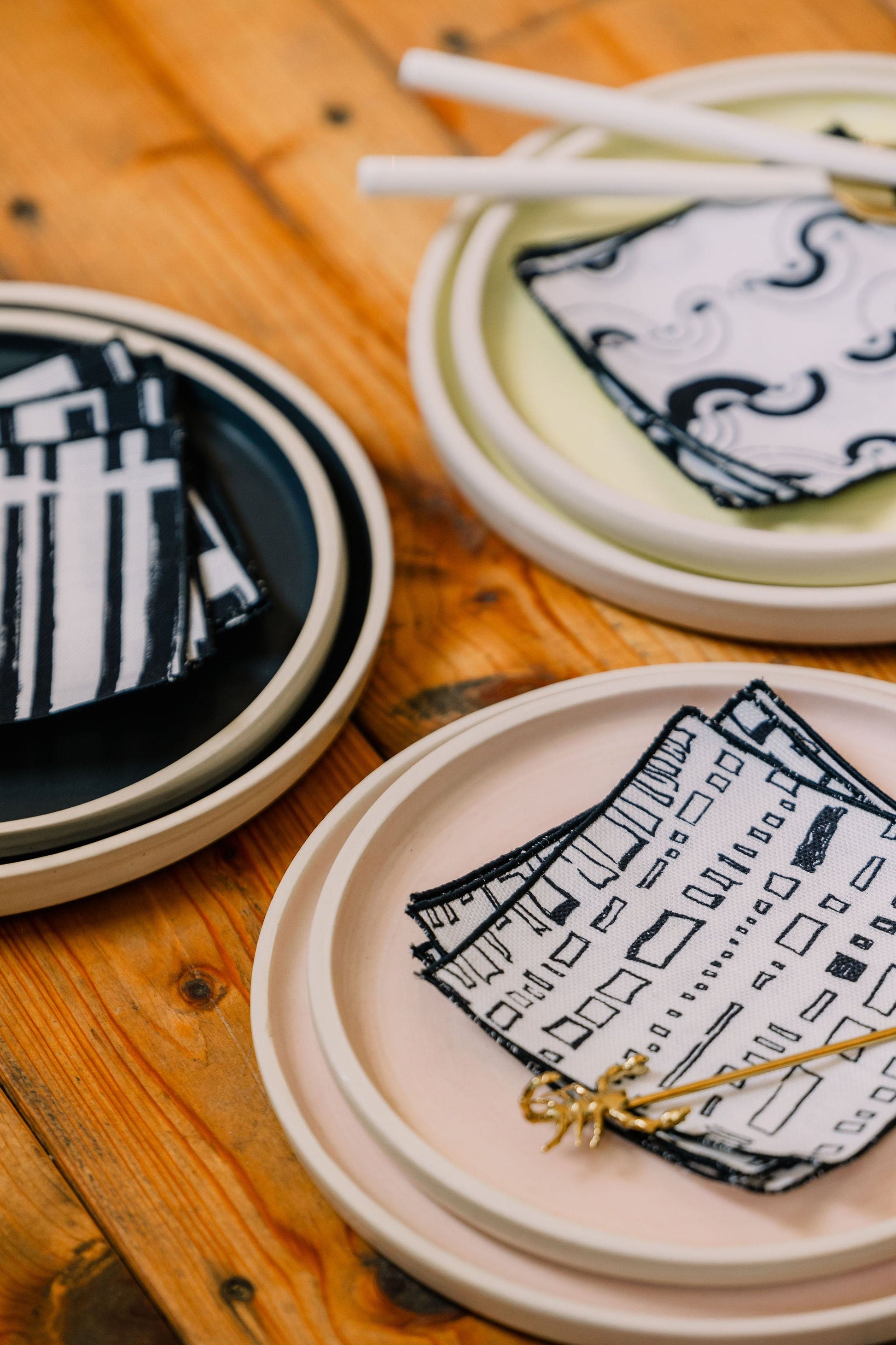 A mix of Bent influence, sustainable problem solving and design - the Capistrano 5" x 5" cocktail napkin in Clairvoyant is undeniably California dreaming.