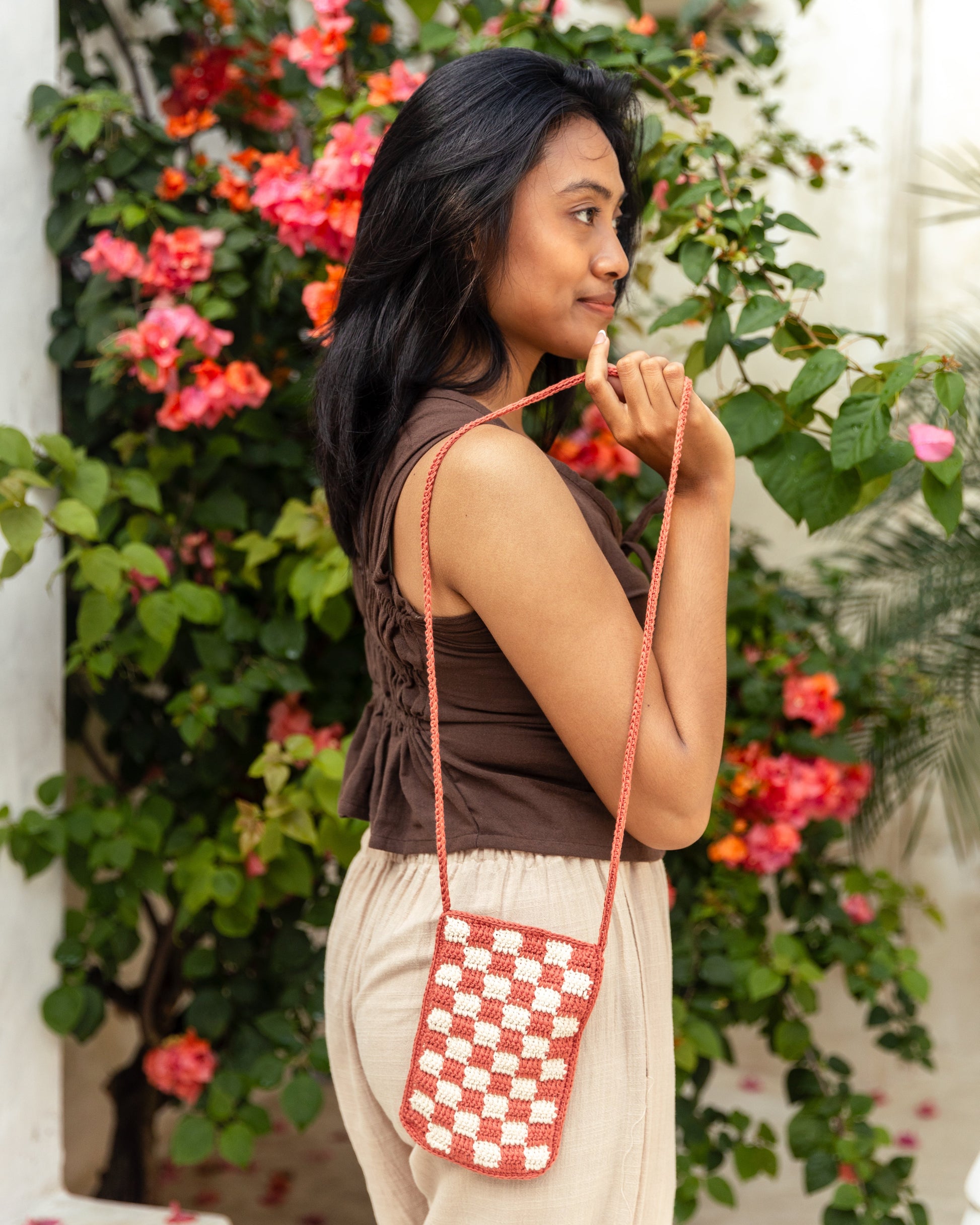 Handcrafted with love, this Checkered Crochet Sling Bag combines style and function. Perfect for carrying your phone, water bottle, or travel essentials, it’s lightweight and durable for all-day comfort. Each bag is a unique blend of artistry and utility, making it your ideal companion for any adventure.
