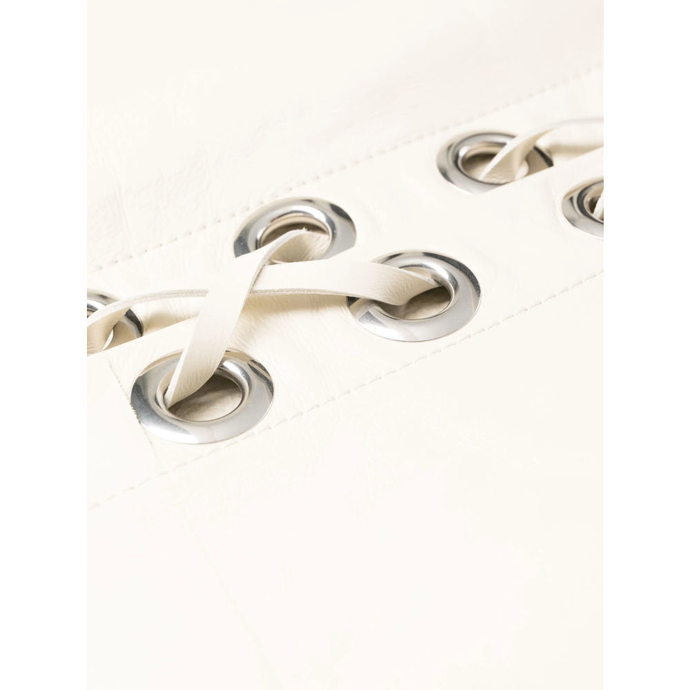 white lambskin lace-up detailing belt loops button fly fastening two rear patch pockets