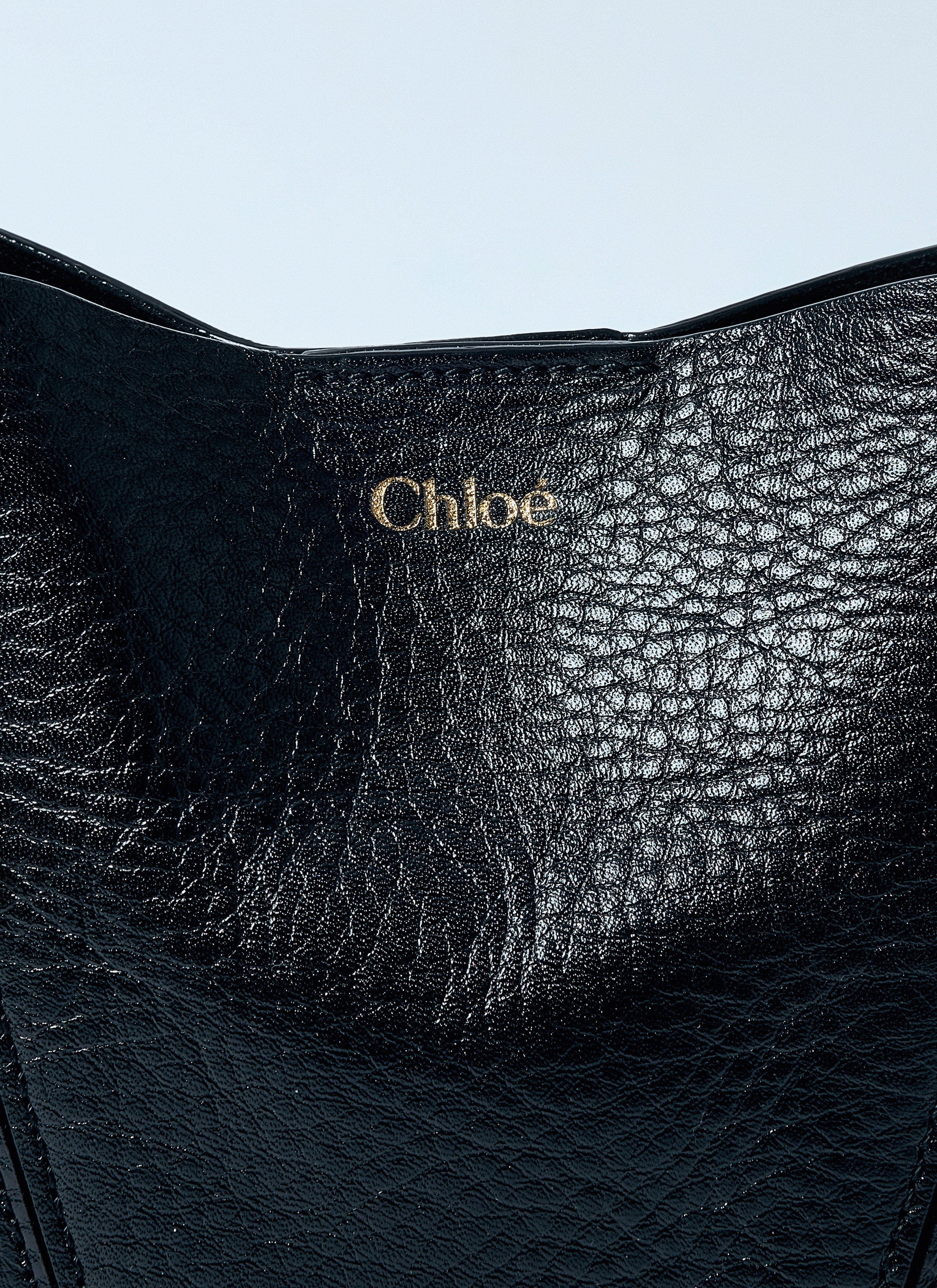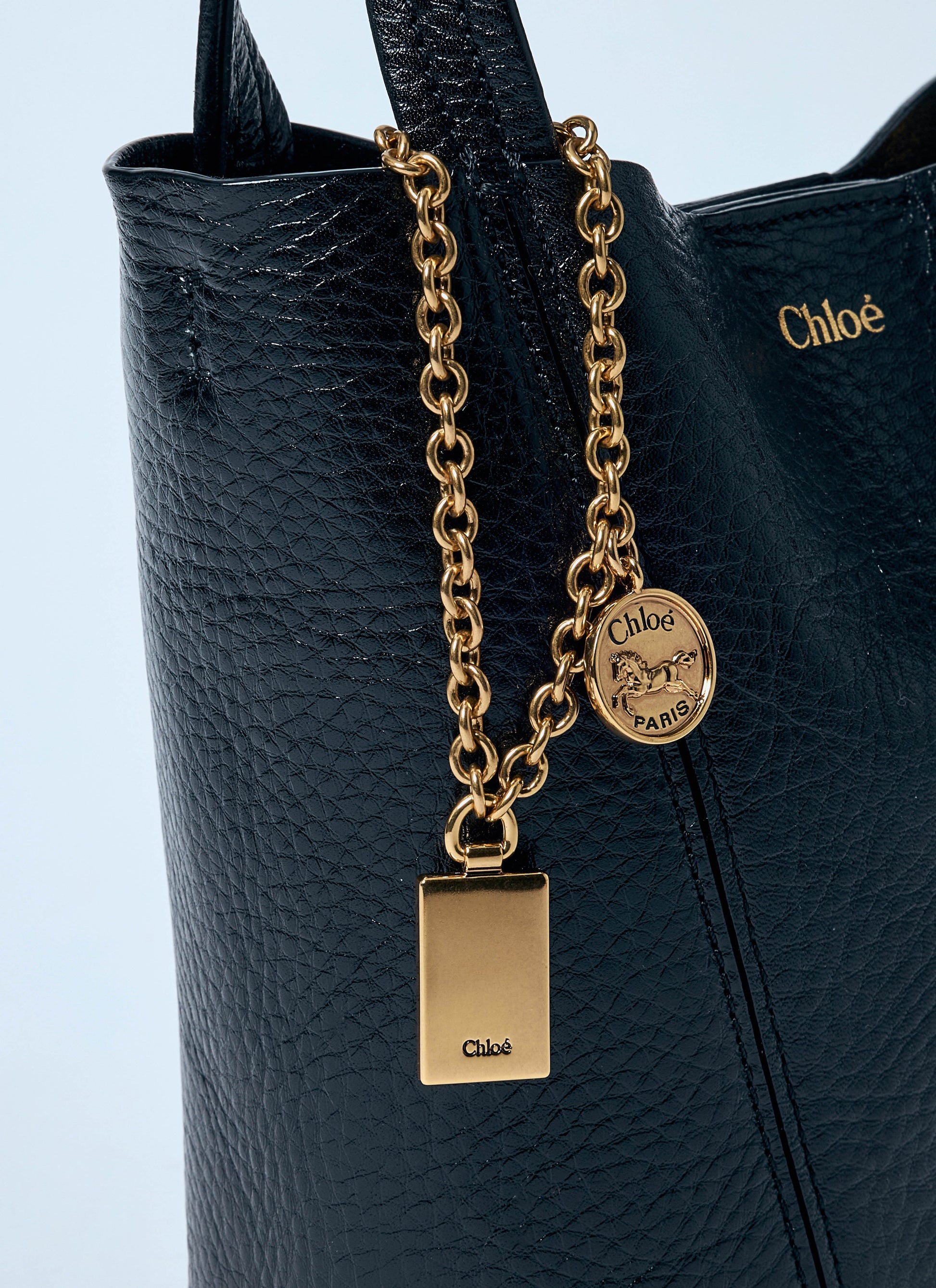 Small Spin tote bag in shiny grained-leather with signature logo and horse charms.