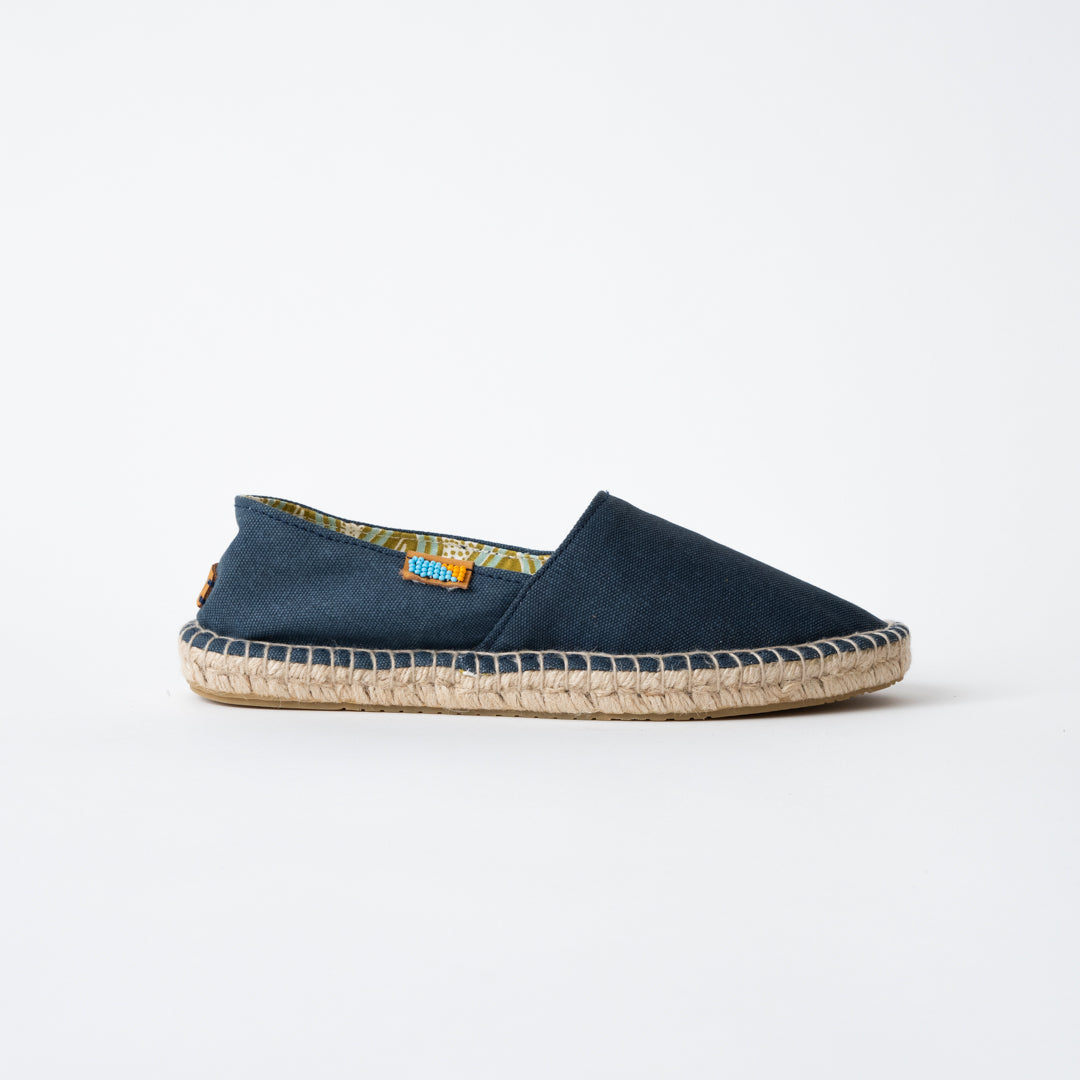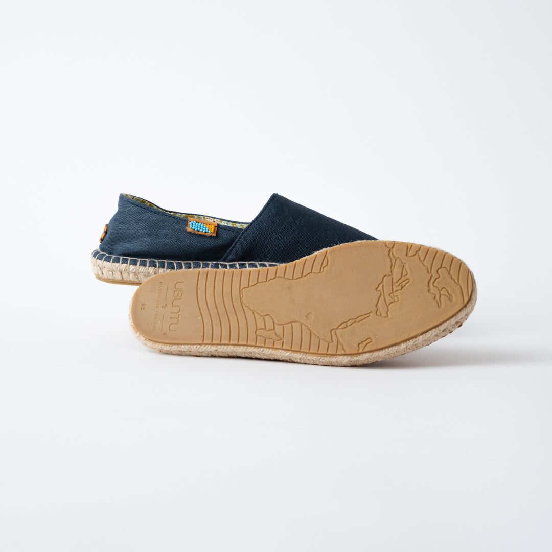 Discover our handmade Afridrille collection. The Afridrille is an everyday shoe designed with adventure in mind. Sturdy, and breathable, these shoes work well by the beach or strolling through the city. Our espadrilles are beautifully crafted by our empowered Maker Mums from 100% East African cotton. Handmade in Maai Mahiu, Kenya Materials: East-African cotton / genuine Kenyan leather, traditional jute soles with vulcanized rubber for durability Sizing: True to size. Not available in wide sizes. Your Afridrilles will be slightly tight at first. The shoe will stretch out and mold to your foot after 2-3 wears. If they are a little tight, we recommend wearing them with socks around the house to loosen up the canvas. Every product supports meaningful, full-time employment in Kenya! Please note W is for Women's and M is for Men's when reviewing our sizing!
