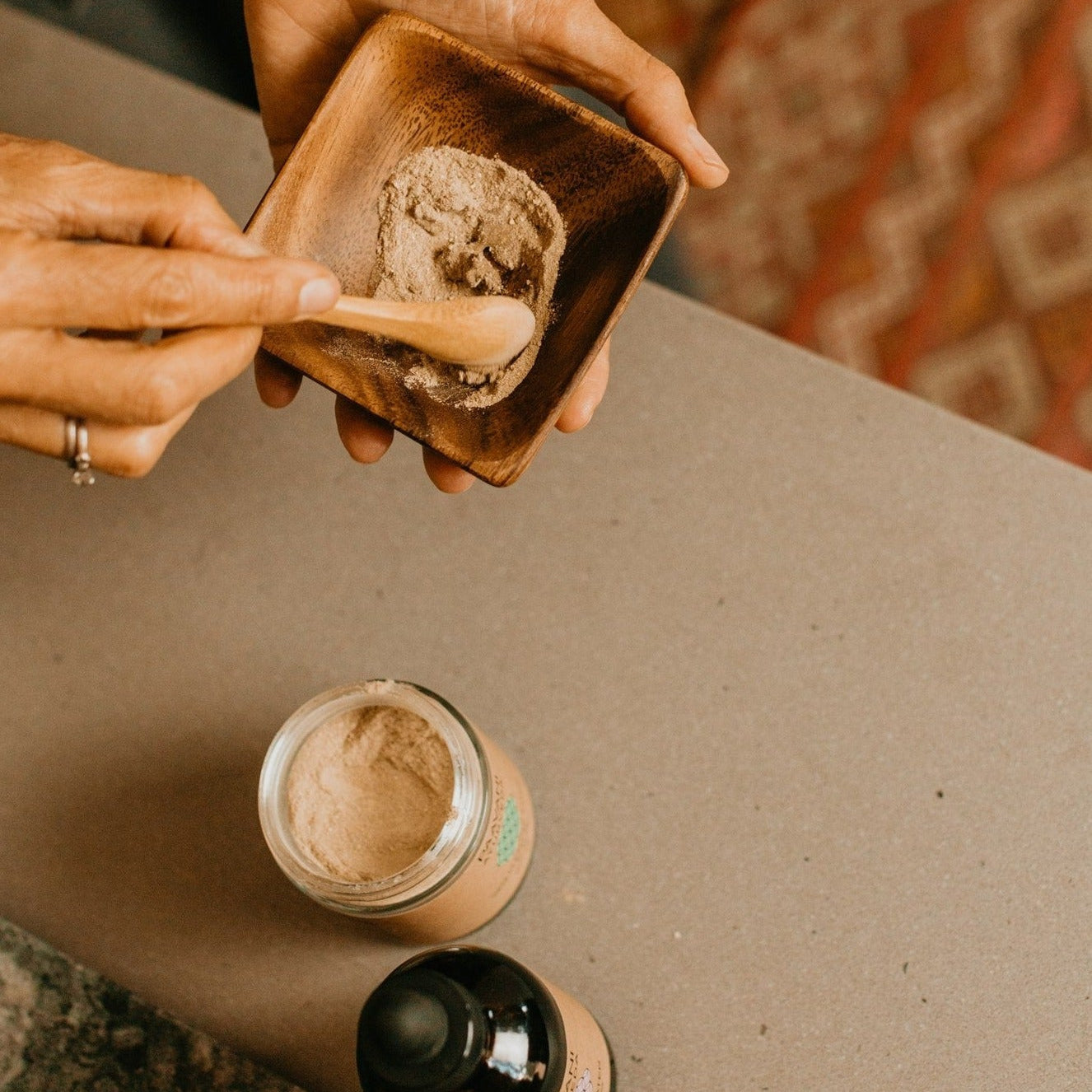 Mix your Cleanser & Mask with Floral Water using the eco-friendly Wooden Bowl & Spoon to create a nutrient-dense paste. Use daily as an exfoliating cleanser or weekly as a revitalizing leave-on mask to reveal smooth, radiant, healthy skin.