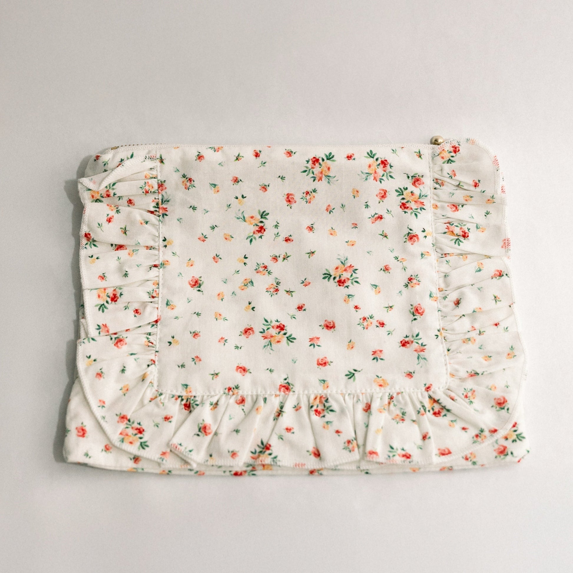 Clementine Bloom | Timeless Floral Ruffle Zipper Pouch