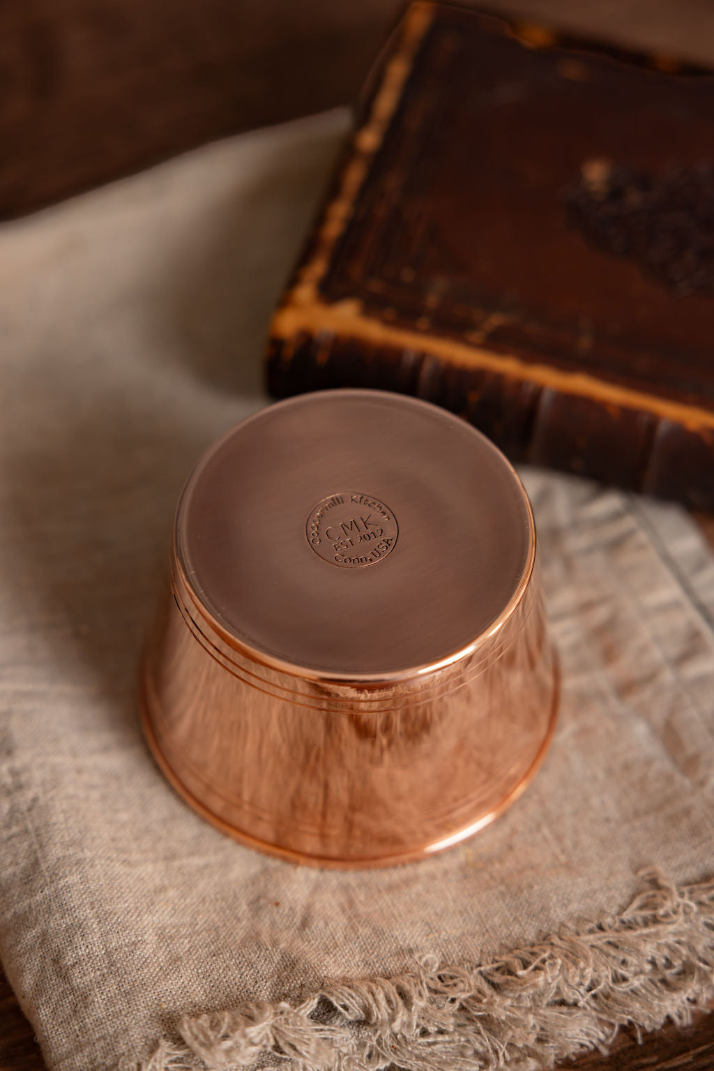 Dimensions: 4" Diameter x 2.5" Deep | Sold as a set of 2 | Tin-lined Bring a touch of old-world kitchen charm to your table with our Vintage Copper Art Deco Bowls, inspired by the refined glamour of the Art Deco barware era and hand-finished for a timeless glow. Whether you're serving dips, garnishes, or delicate desserts, these artisan-crafted copper bowls add a soft gleam and nostalgic elegance to your kitchen. Tin-lined for safe food use, this heirloom-quality set blends style and function, creating beauty in the everyday and elegance in the ordinary. At Coppermill Kitchen, we design and restore vintage-inspired kitchenware and accessories to reflect the warmth and integrity of European-style kitchen decor. Style these bowls on a wood or marble board for serving, or use them bedside for small treasures. Hand wash only and dry immediately to preserve the natural luster of the copper.