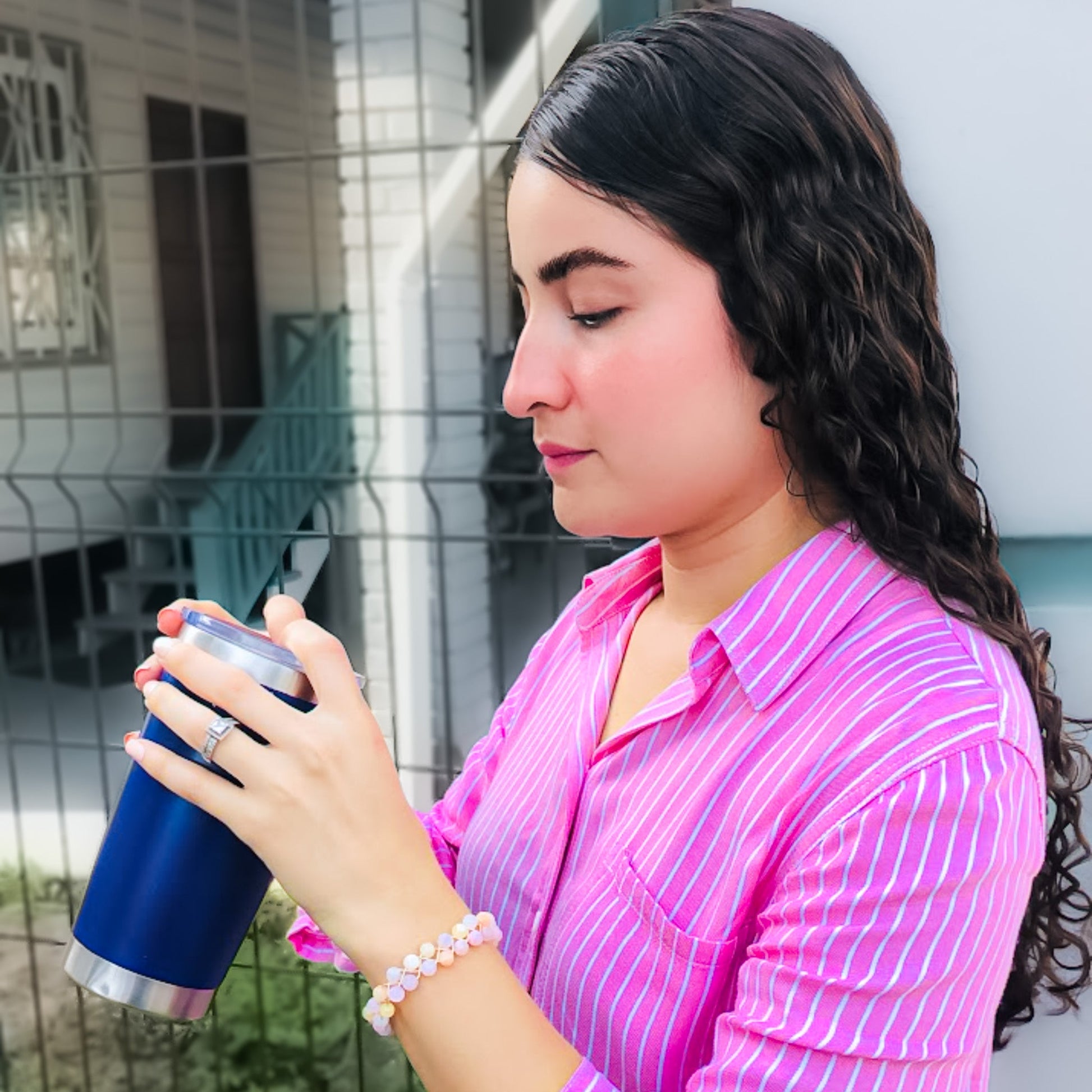 Introducing an exquisite addition to your jewelry collection: the Cotton Candy bracelet, meticulously crafted by our skilled artisans. This refined piece combines lustrous gold wire with delicate pastel agate beads, creating a harmonious blend of elegance and understated luxury. The soft, dreamy hues of the agate evoke the whimsical charm of spun sugar, while the precious metal accents elevate the design to sophisticated heights. Designed for versatility and comfort, this bracelet accommodates wrist sizes from 7 to 8½ inches and features a secure lobster clasp with an adjustable extender, ensuring a perfect fit for any occasion. Whether layered with other pieces or worn as a standalone statement, the Cotton Candy bracelet brings a touch of refined femininity to your everyday elegance.