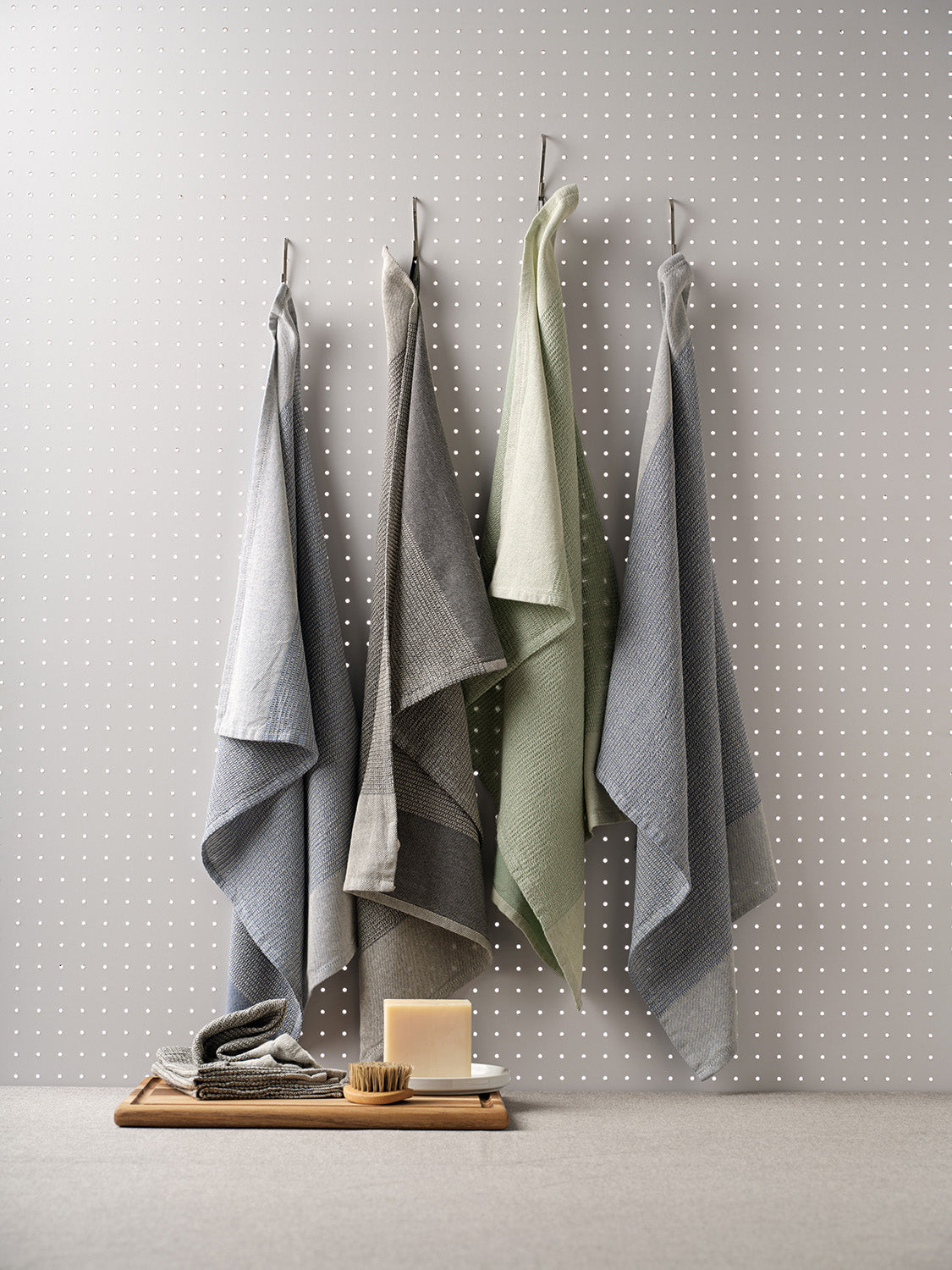 Set of 4. Featuring a special weave pattern, our absorbent kitchen towels make a unique gift or decorative addition. Made with 100% cotton (50% upcycled), these low lint dish washing towels are perfect for drying glasses and dishes, mopping up spills or any household chore. Decorate your kitchen with our charming kitchen towels! Larger than standard towels add a touch of style to any decor, while the rustic fabric ensures long-lasting use. Convenient corner loops make hanging very easy.