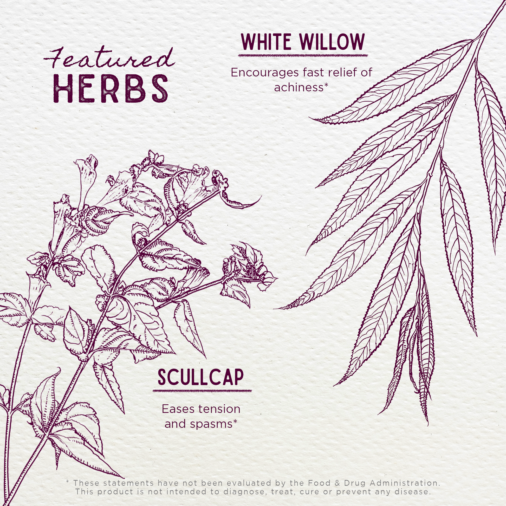 - White Willow Bark: Traditionally used for centuries, Salix alba has a long history of use for general wellness. Historical texts note that it was chewed to ease everyday physical discomforts. The bark contains salicin, a naturally occurring compound related to those found in some over-the-counter products. Today, White Willow is used by herbalists to support a healthy inflammatory response and promote overall comfort in the body.