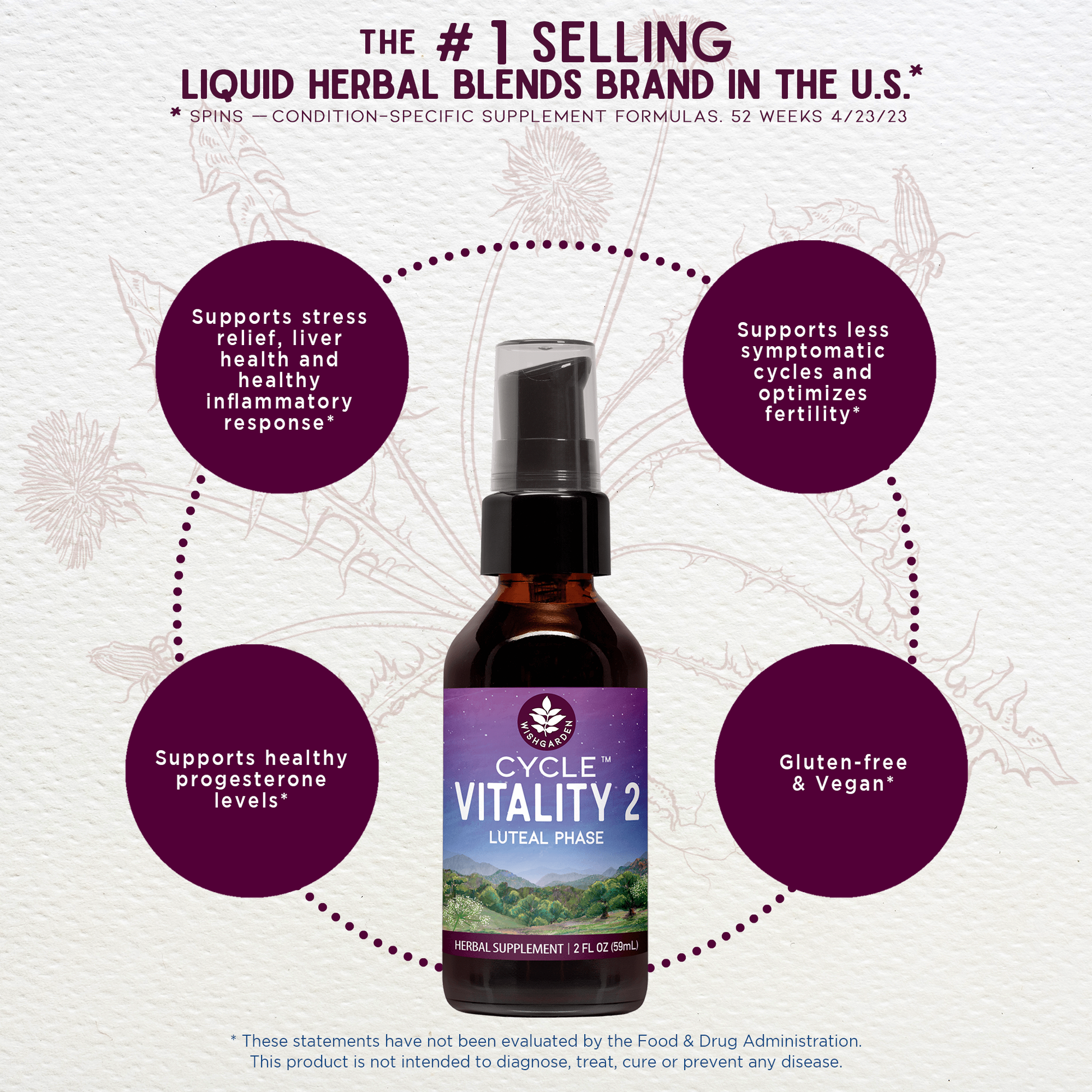 Organic Vitex berry (Vitex agnus-castus), Wild Yam root (Dioscorea villosa), organic Lady's Mantle aerials (Alchemilla vulgaris, A. xanthochlora), organic Burdock root (Arctium lappa), Black Haw bark (Viburnum prunifolium), organic Eleuthero root (Eleutherococcus senticosus), organic Dandelion root (Taraxacum officinale), Rocky Mountain artesian spring water, organic gluten-free alcohol & vegetable glycerine.