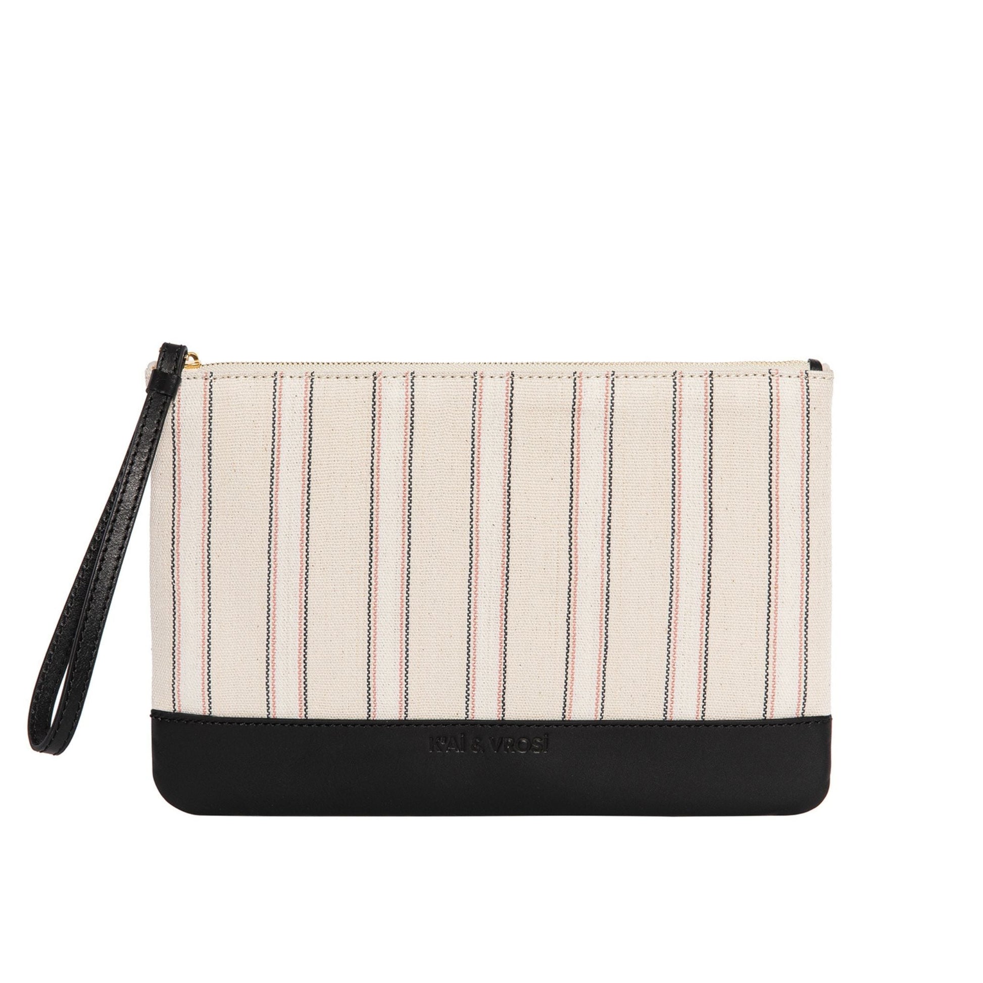 Defne - Black Calfskin & Handloomed Fabric Clutch
