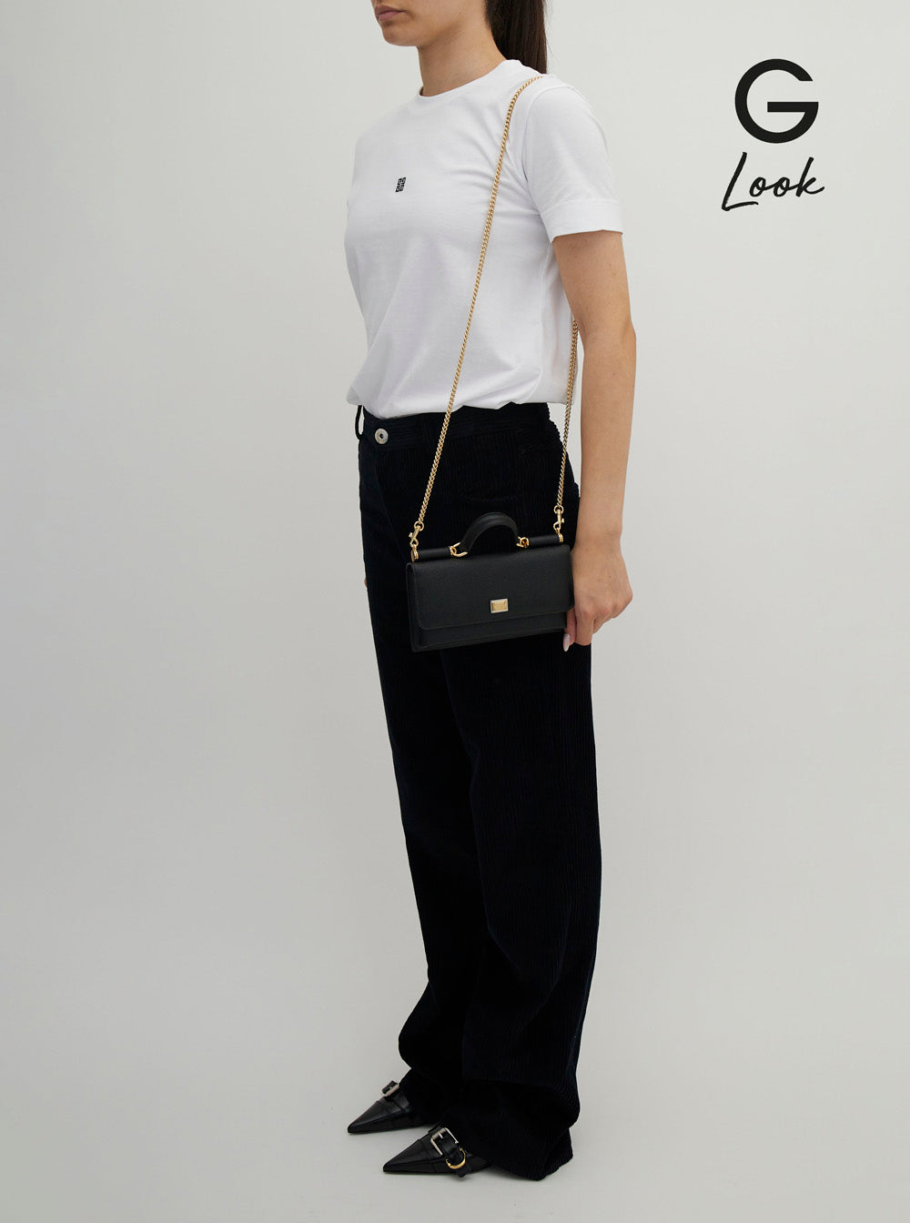 Dolce & Gabbana Women Black Handbag With Logo Plaque In Grained Leather Woman