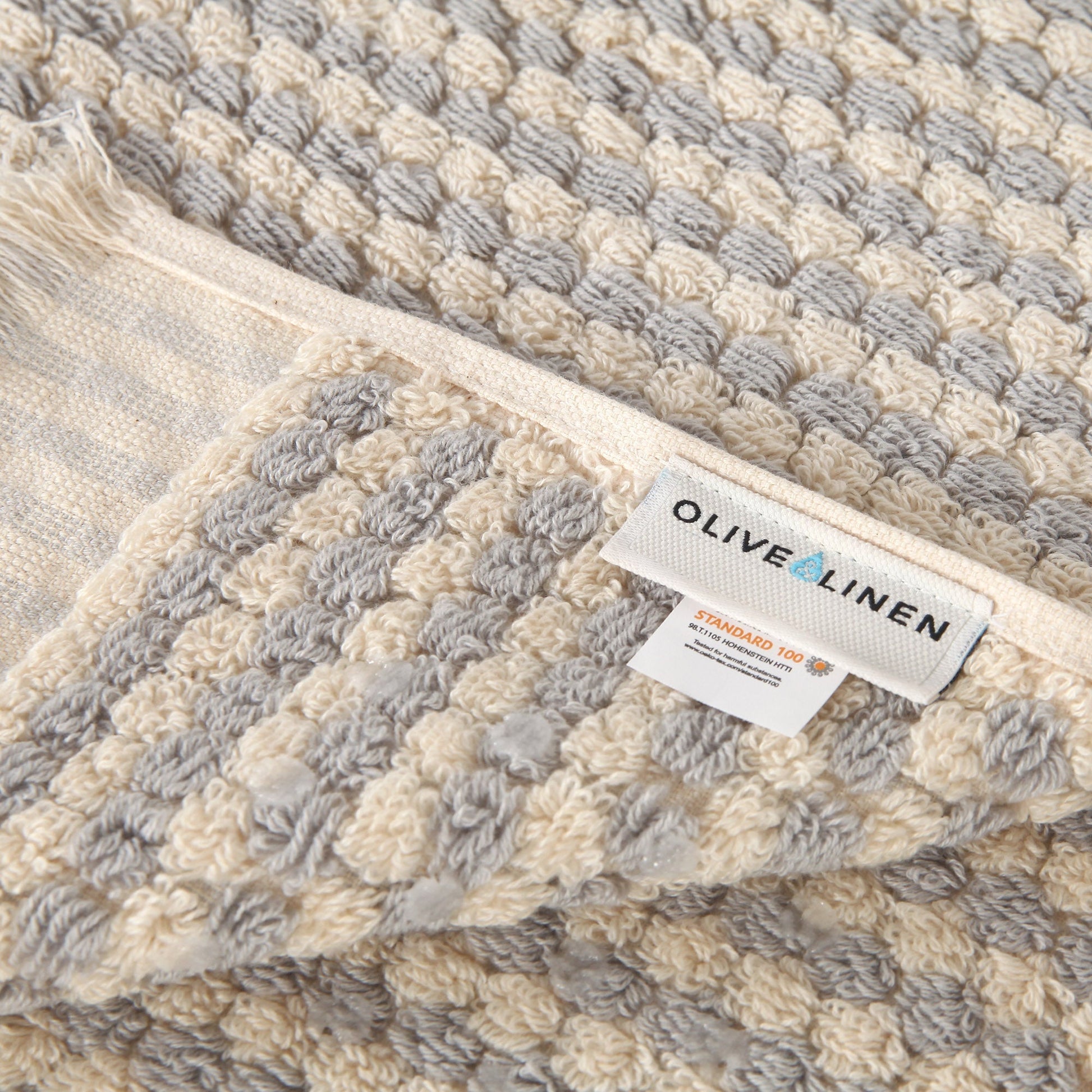 Our Dots Bath Mat is expertly crafted with intricate details from the finest long-staple Turkish cotton. Soft under foot and super absorbent, this mat adds a worldly charm to any bathroom. Loomed from yarn died, %100 long-staple Premium Turkish Cotton Feels soft and cozy under foot. Finished with eyelash fringe for a relaxed and modern look An anti slip coating underneath our mat helps keep it firmly in place Super durable and machine washable OEKO-TEX® STANDARD 100 certified, 98.T.1105 HOHENSTEIN HTTI Free of harmful chemicals and dyes – good for you and the environment Made in Turkey _____________________________________________________________ Materials: 100% Premium Turkish Cotton Size: 20"x34" Weight: 306g/10.8oz Care: Wash in cold water, tumble dry low or hang to dry Handcrafted by Olive and Linen ______________________________________________