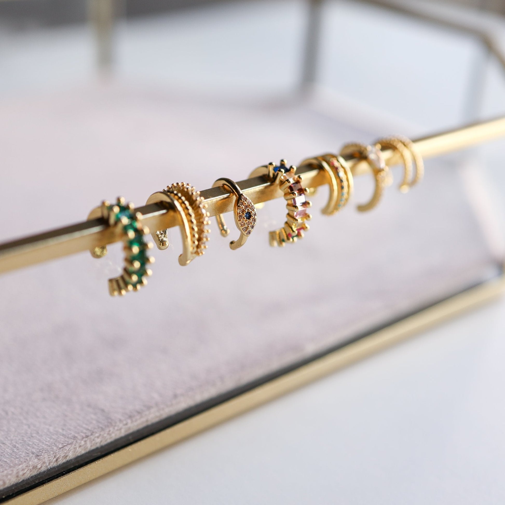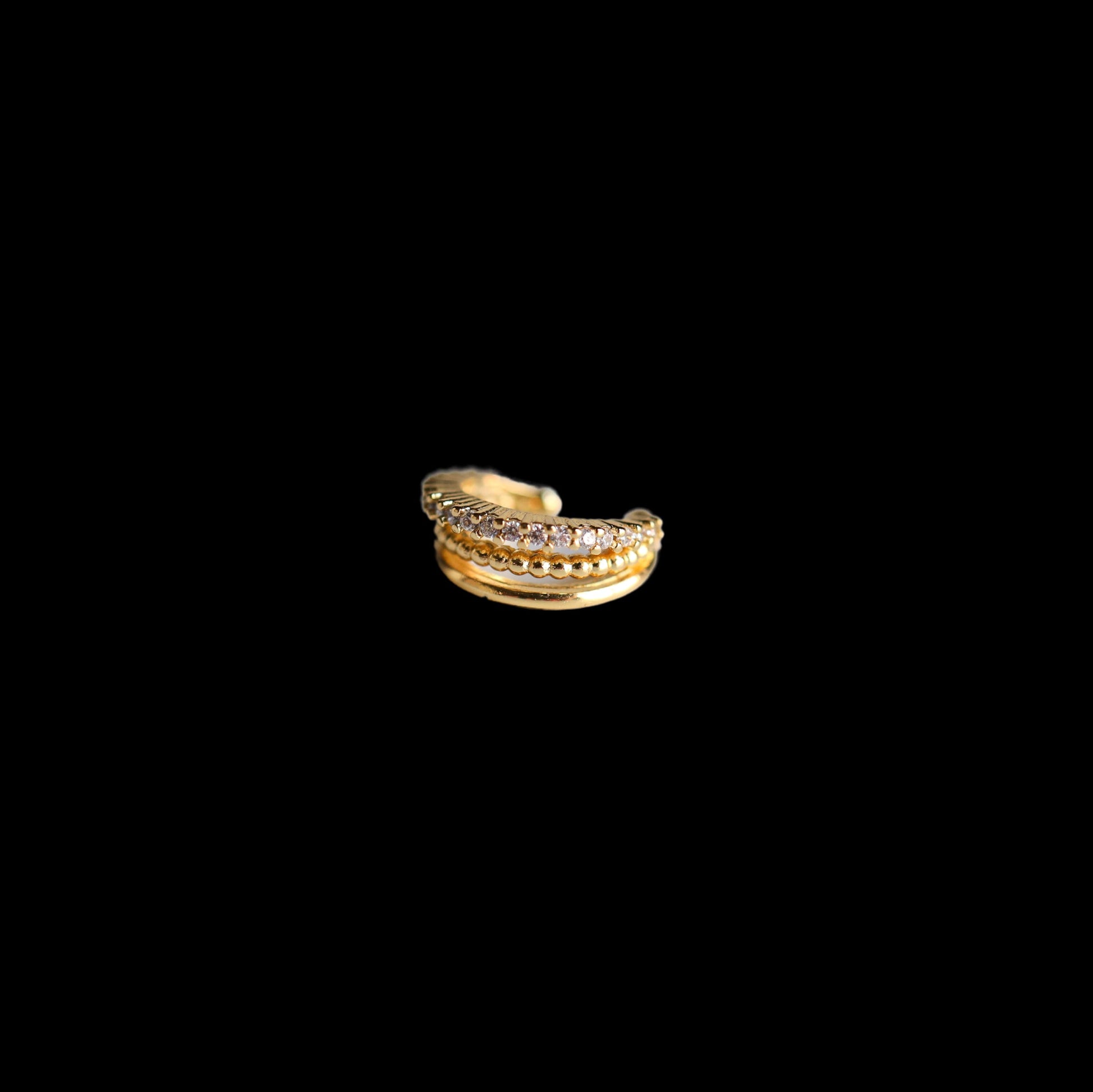 This beautiful ear cuff is a must-have for your jewelry collection. It features 3 rows of dazzling crystals set in gleaming gold for a look that's sure to turn heads. Details: Handcrafted in Medellin, Colombia Materials: Rhodium Size: 1 cm SKU: E1167 FOSTERIE | Accessories with Intention Founded on the belief that fashion + compassion can make a positive impact on the world, each FOSTERIE exclusive product is proudly and ethically handcrafted in Colombia by our team of indigenous Embera artisans. These pieces have been infused with love + joy and our hope is that these sentiments remain each time you wear them. Your support provides a means of upwards social mobility for our artisans, ensuring fair wages and safe working conditions. Learn more about our mission + makers at Fosterie.com.