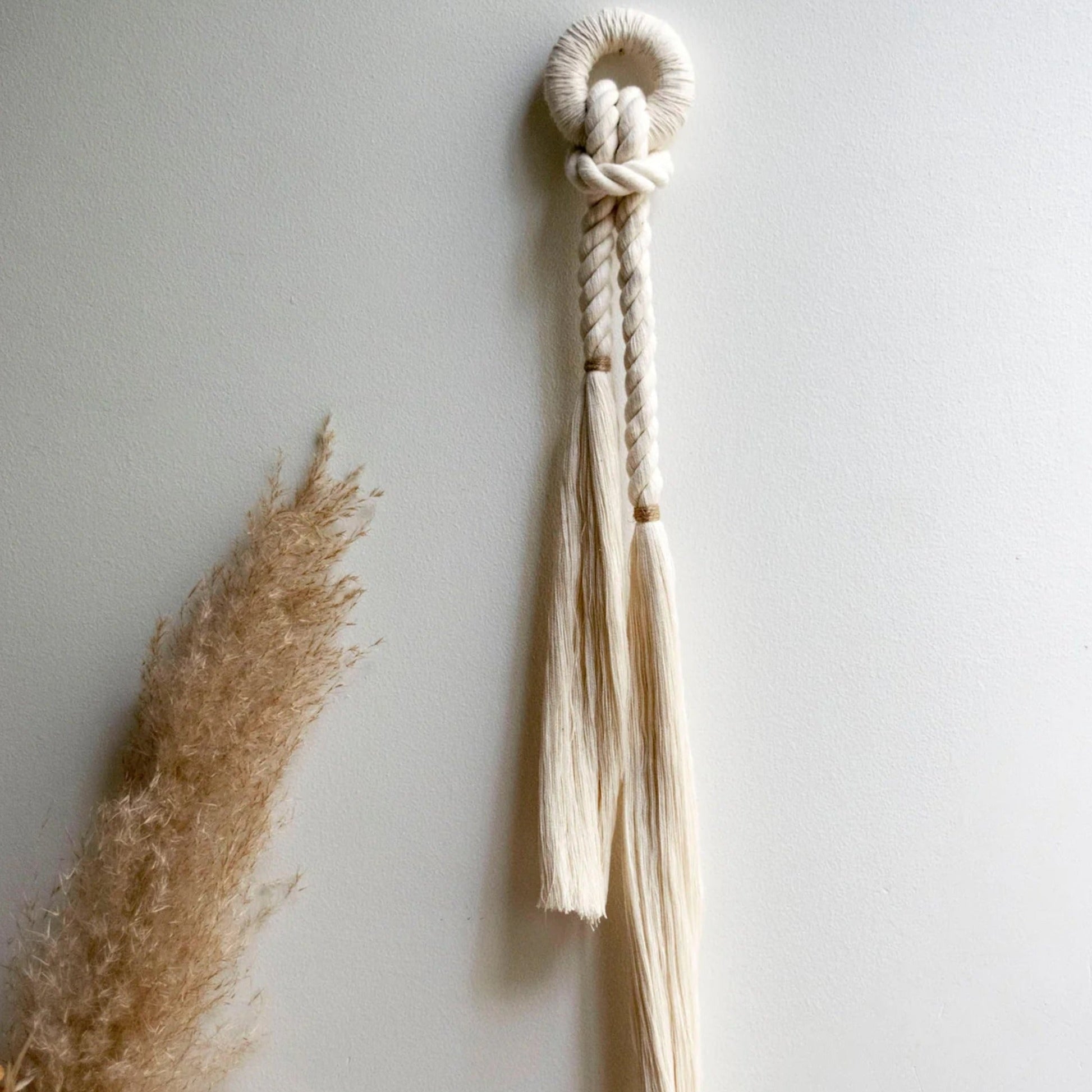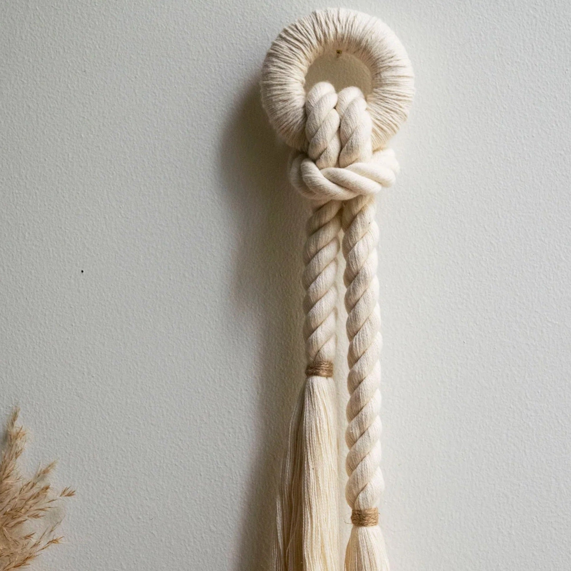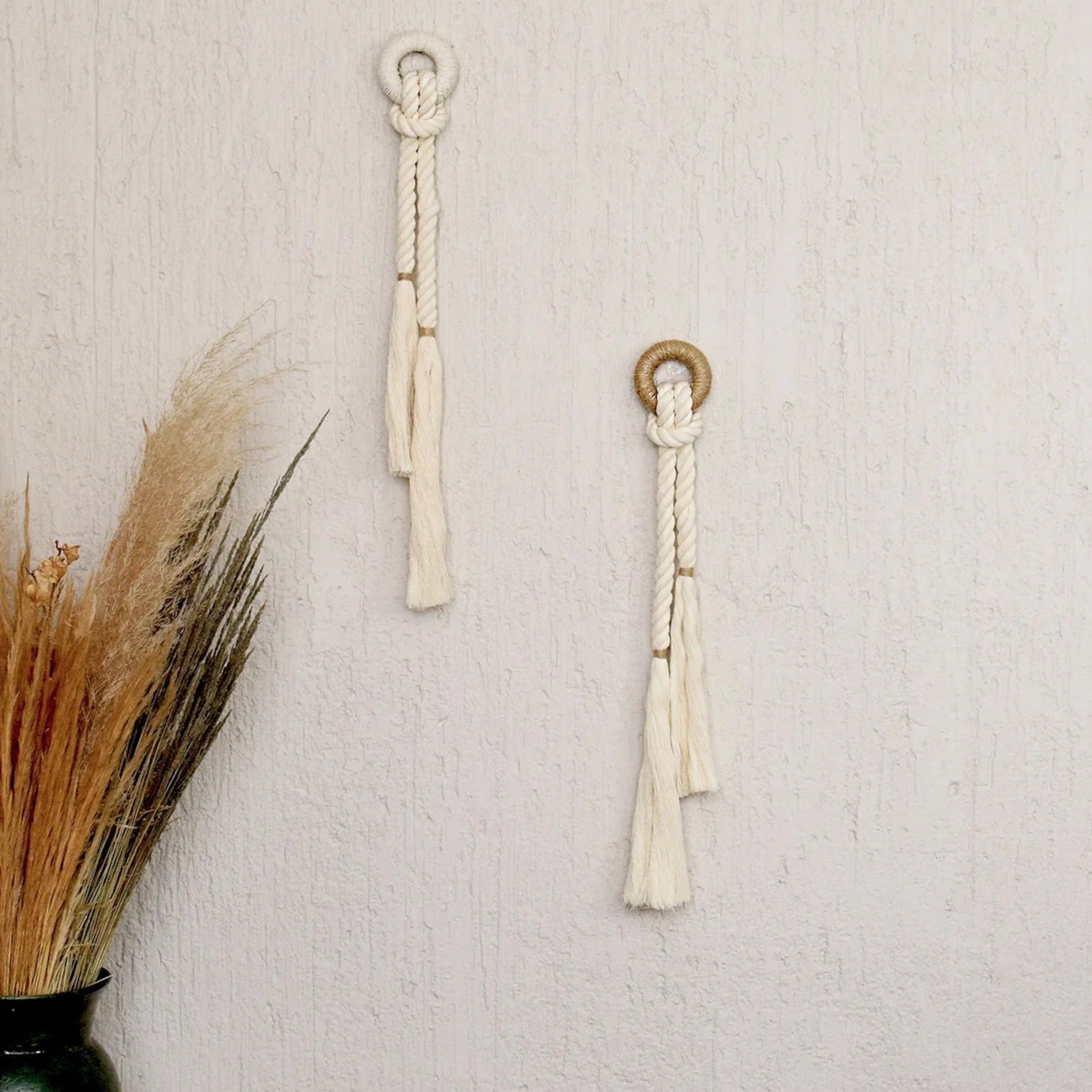 Handcrafted piece with natural cotton fiber rope and color accent with jute. Ideal to complement any wall or corner of your space. Combine them with the rest of the Emma collection!