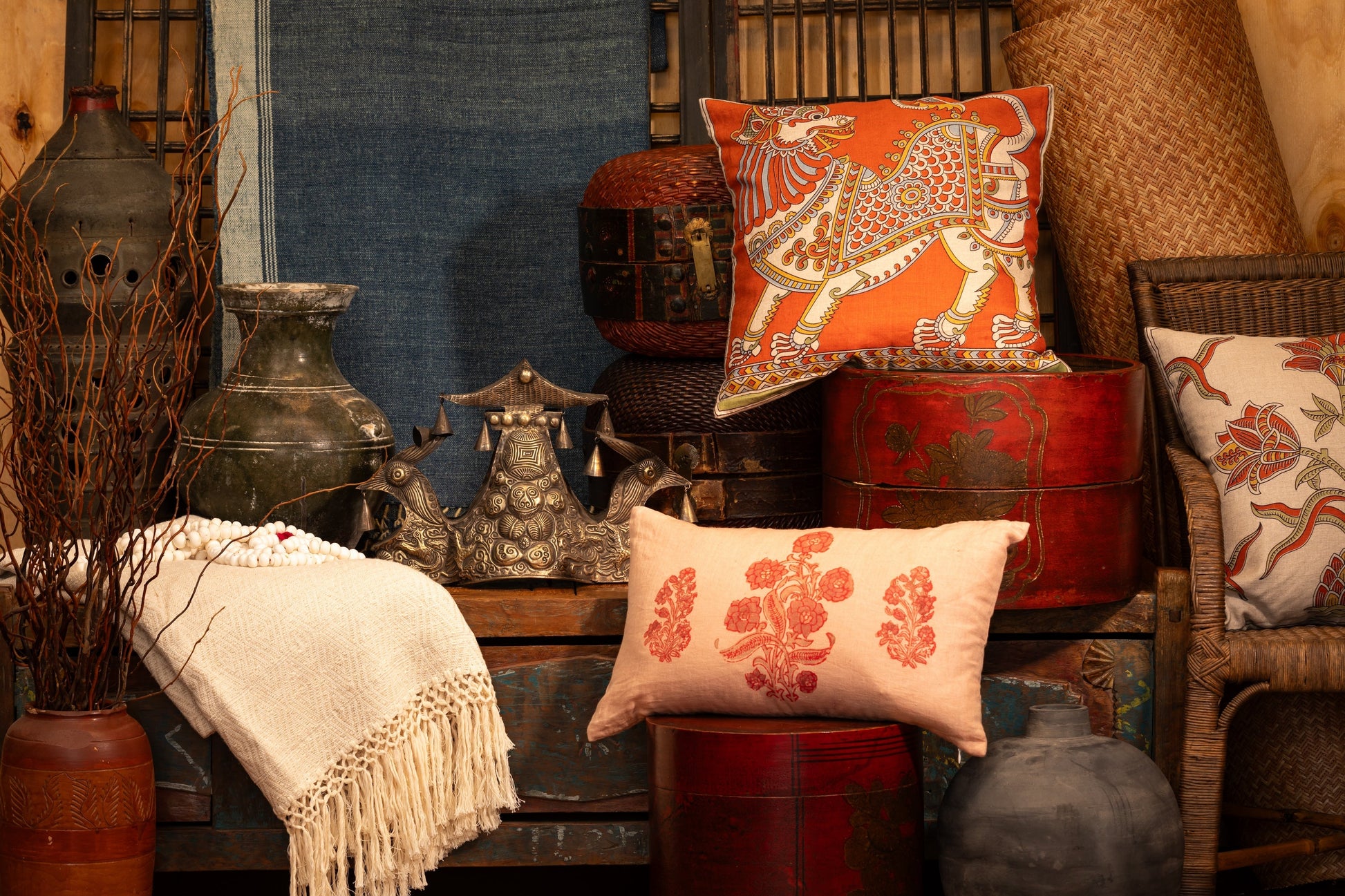 Delicate floral print in Coral, Clay & Sand on Rose.