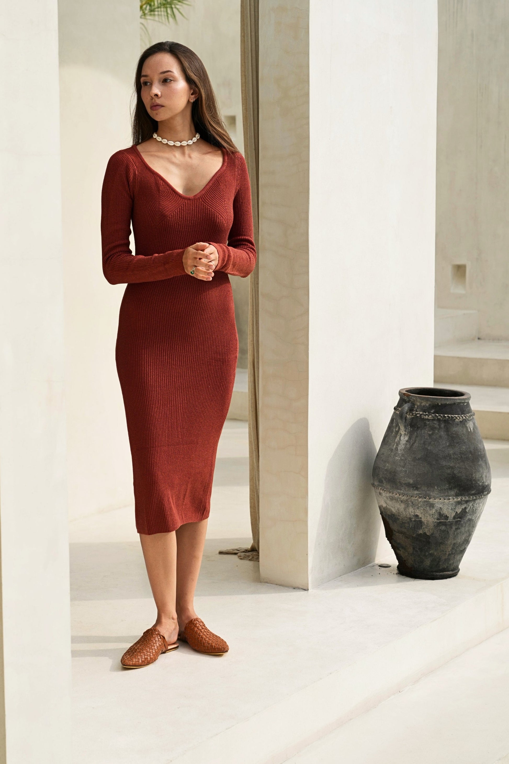 Erin Long Sleeves Knit dress in Sienna