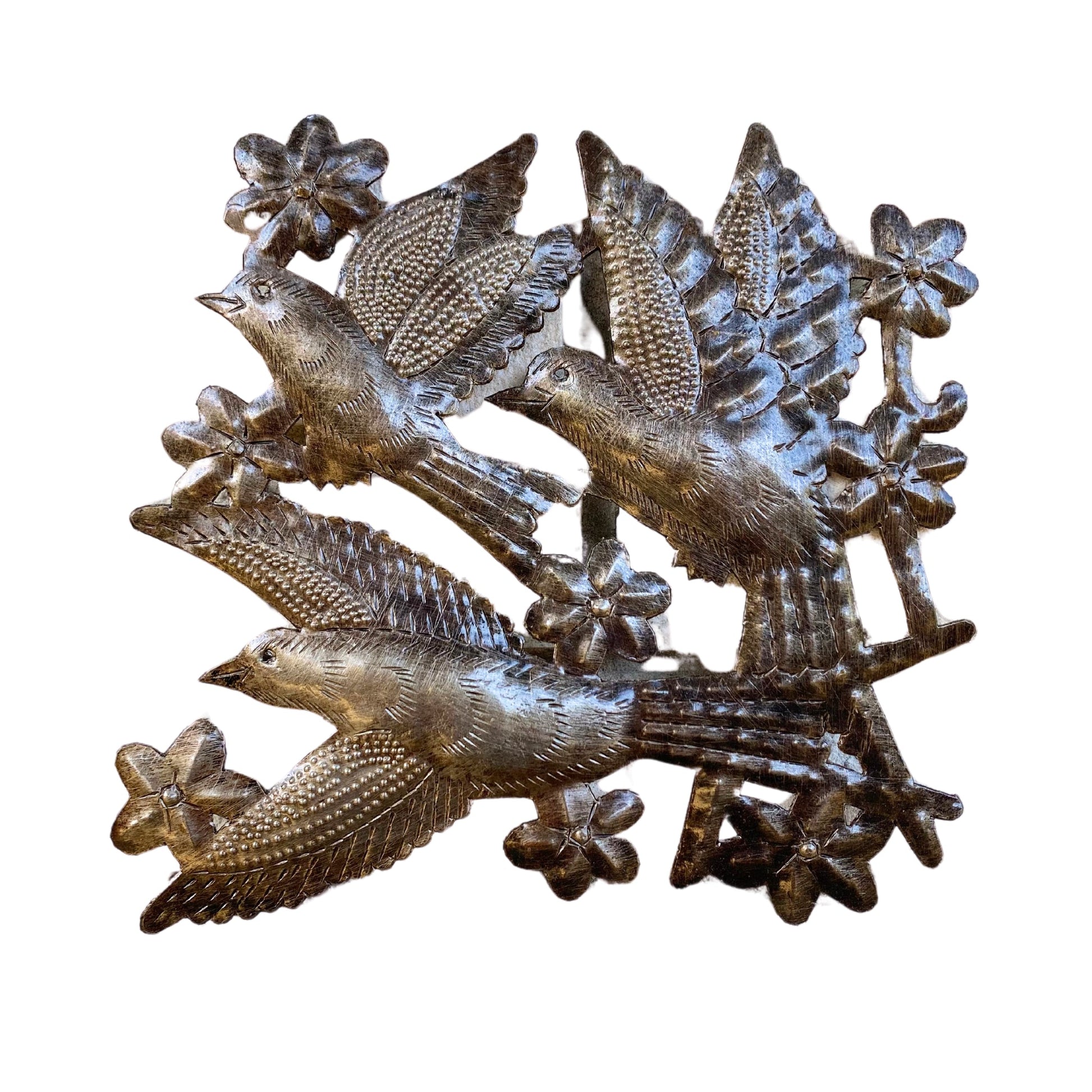 A folk art that dates back to the mid-20th century, Haiti metal art today is the art of‚ recycling and transforming discarded steel oil drums into ornate metal artwork. As‚ handmade Haitian‚ metal‚ art, there will be slight variations from one piece to another, adding to the unique‚ character and value of each piece of metal art.