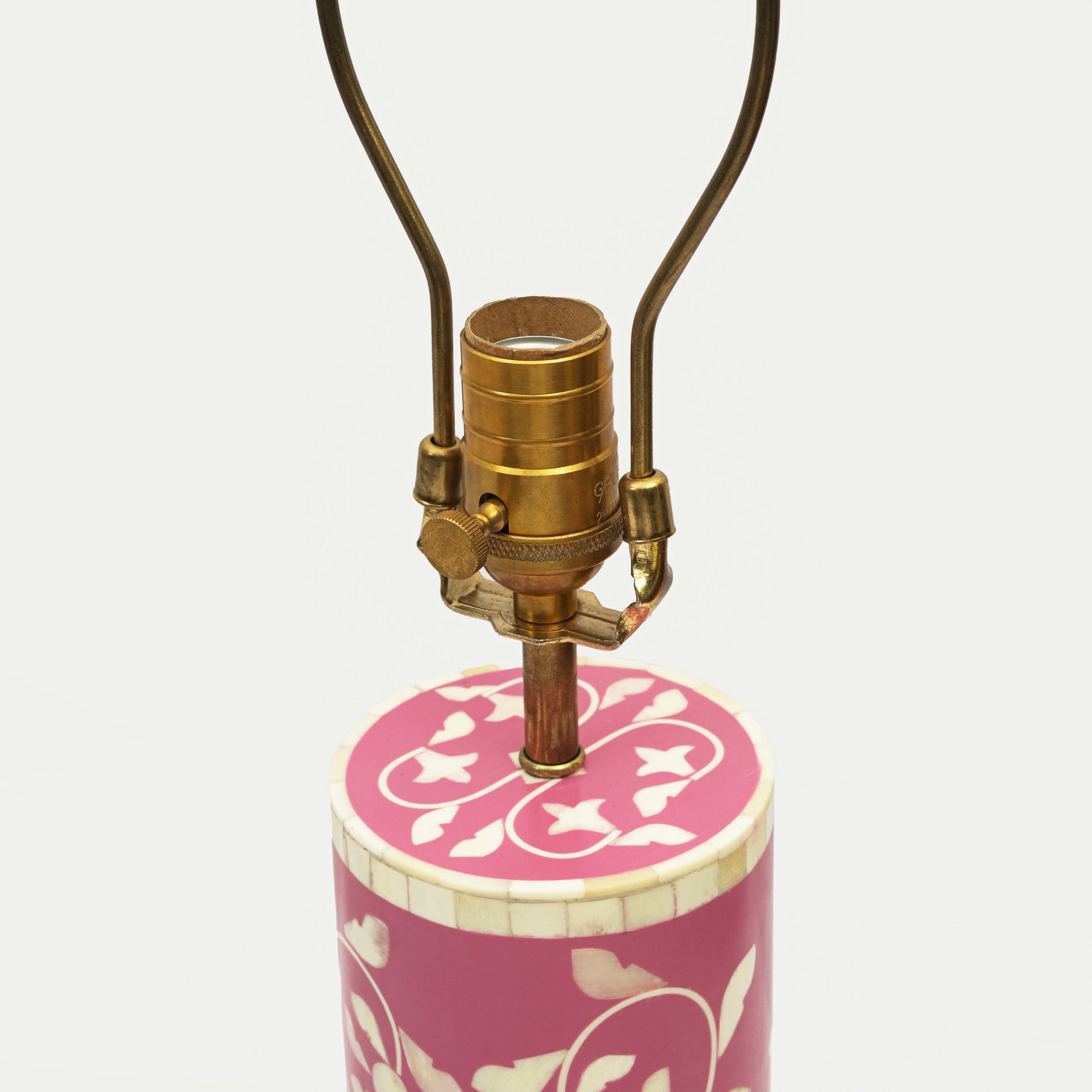 Adorned with delicate floral vines, this petite lamp base is one of our signature inlay styles—timeless in design, yet endlessly versatile. Available in a range of colors—from soft greens, blues, greys, and blacks to joyful pops of yellow and pink—it offers something for every mood and space. Petite yet radiant, it casts a soft, inviting glow perfect for bedside alcoves, cozy nooks, or welcoming entryways. A beautiful blend of tradition and charm—keep it close, or gift it to someone who finds magic in the little things. Each piece is meticulously handcrafted by Indian artisans, using traditional bone and resin techniques that celebrate heritage craftsmanship.