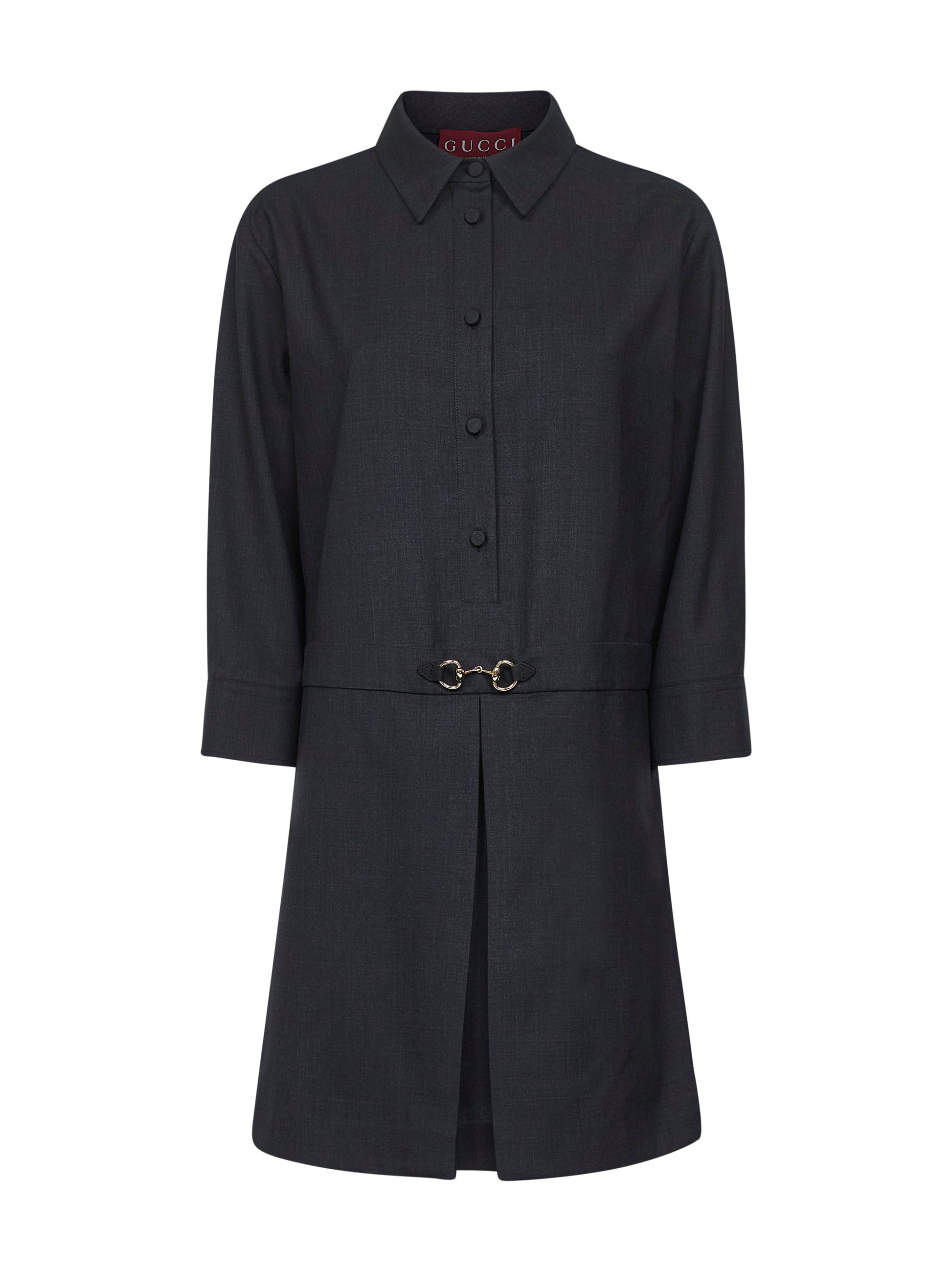 Gucci Women Gray Wool Shirt Dress With Horsebit